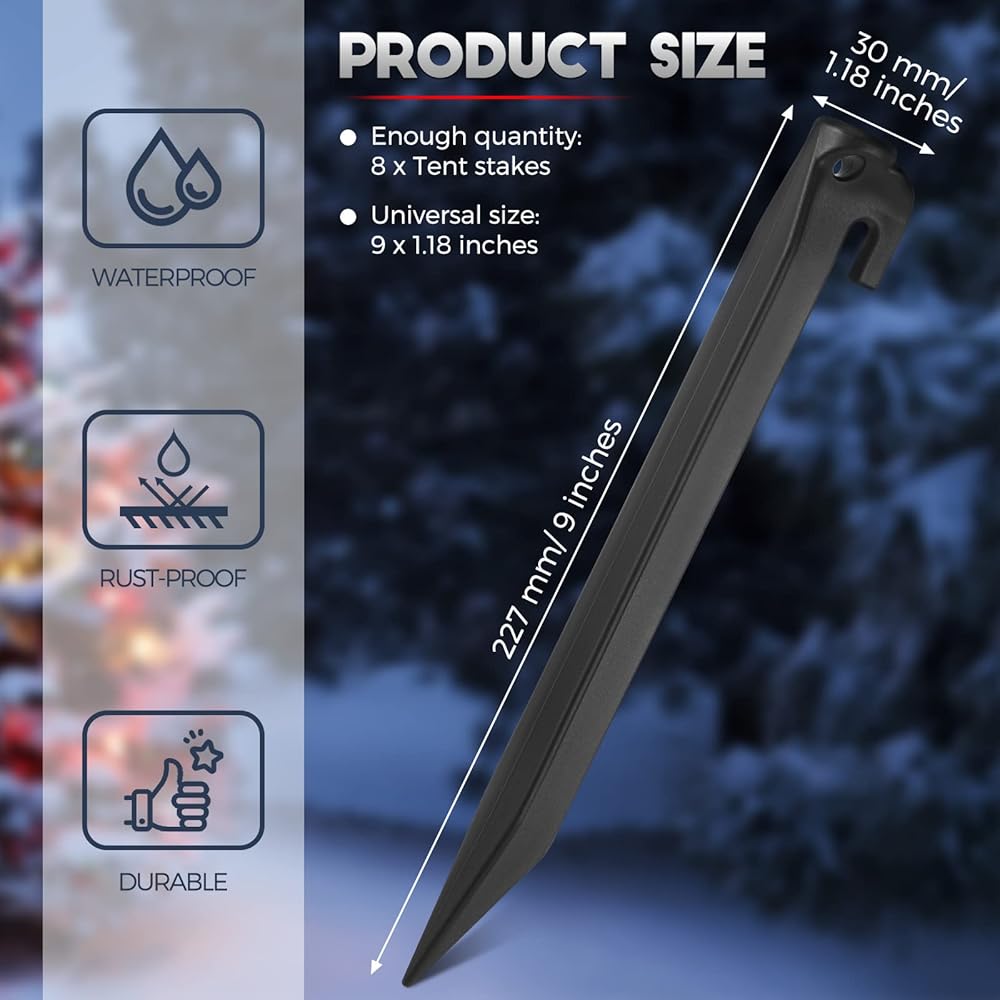 • حجم عالمي: سوف تحصل على 16 قطعة من أوتاد خيمة التخييم السوداء، حجم الوتد حوالي 227 × 20 مم/ 9 × 0.8 بوصة، كمية كافية يمكن أن تلبي احتياجاتك اليومية والاستبدال، الحجم مناسب أيضًا لمعظم الخيام الأحجام، الحصة خفيفة نسبيًا، وسهلة الحمل والتخزين