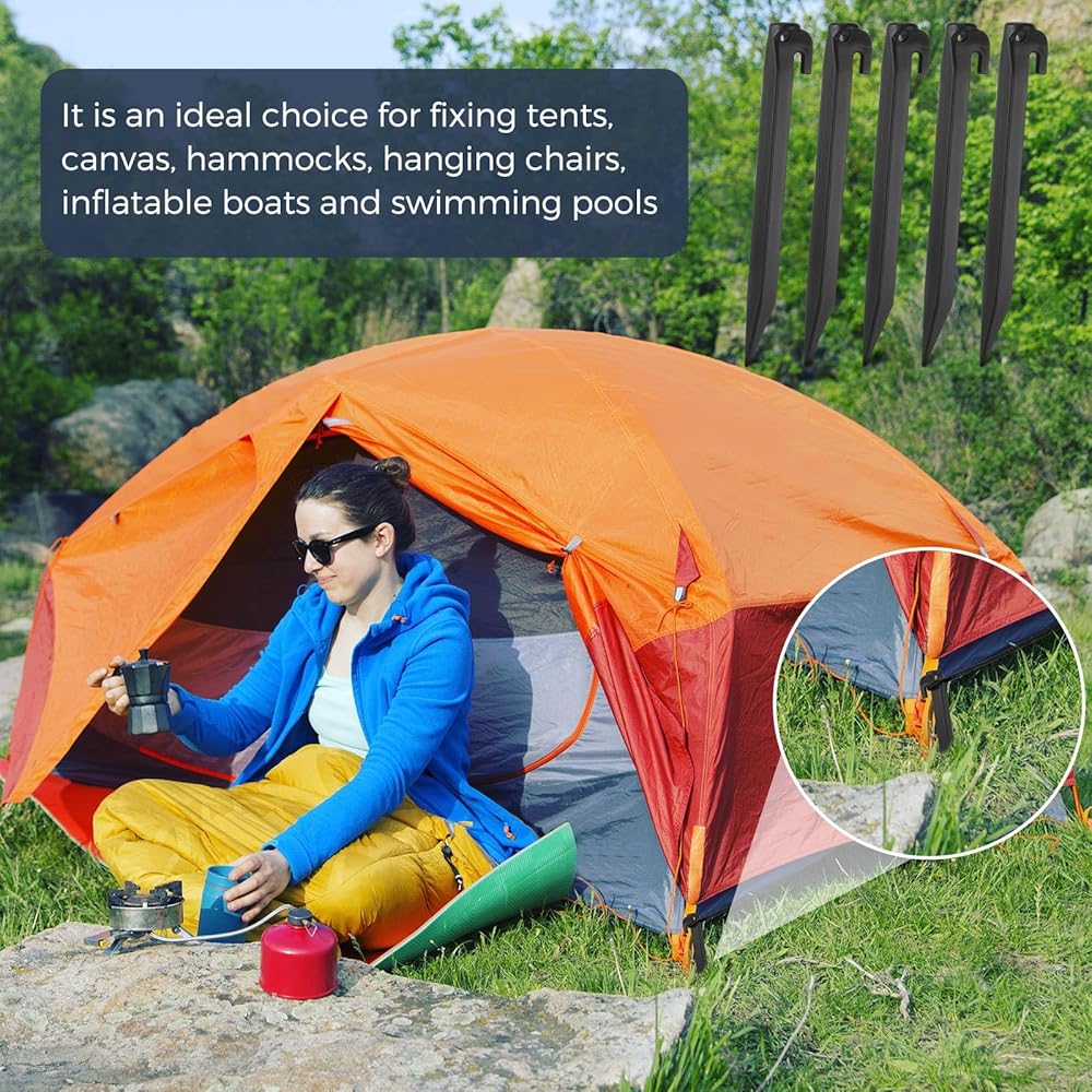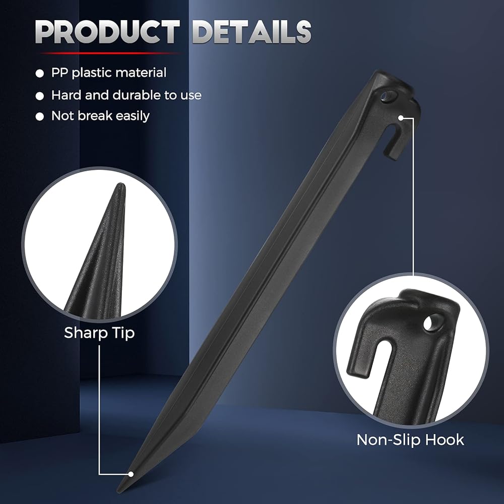 • خفيف الوزن وقابل للحمل: على عكس الأوتاد المعدنية الأخرى الموجودة في السوق، فإن ملحق التخييم هذا مصنوع من البلاستيك الذي لا يصدأ، وهو مصمم بشكل رائع ليكون خفيفًا، بحيث يمكنك وضعه في حقيبة الظهر الخاصة بك عند الذهاب للتخييم، ويمكنك أدخله بسهولة في الأرض دون استخدام بعض الأدوات المعقدة
