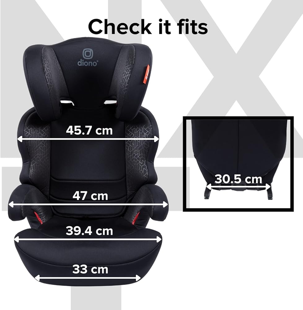مقعد سيارة معزز بظهر مرتفع من Diono Everett NXT مع مزلاج صلب، تصميم خفيف الوزن ونحيف وحاملات أكواب لمقعد السيارة مقاس XL لمقاعد السيارة راديان وإيفريت، عبوة من حاملي أكواب، أسود