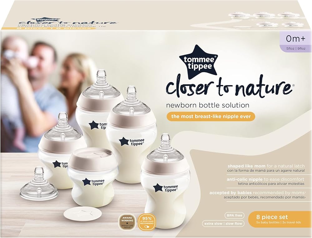 • First Bottle Solution: This kit contains 2x 5oz Closer to Nature bottles with extra slow flow nipples, 3x 9oz Closer to Nature bottles with slow flow nipples and 3x travel lids