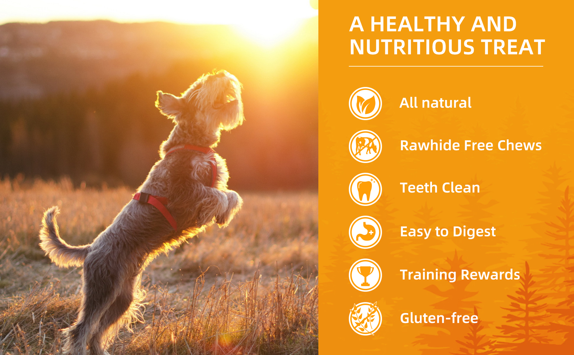 [تعزيز صحة ونظافة الأسنان] تشجع منتجاتنا على المضغ، مما يقلل بشكل طبيعي من تراكم البلاك والجير لتحسين صحة أسنان كلبك. كما أنها تقوي اللثة وتحسن صحة الأسنان بشكل عام، مما يضمن تجنب كلبك للعض.