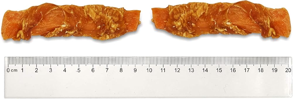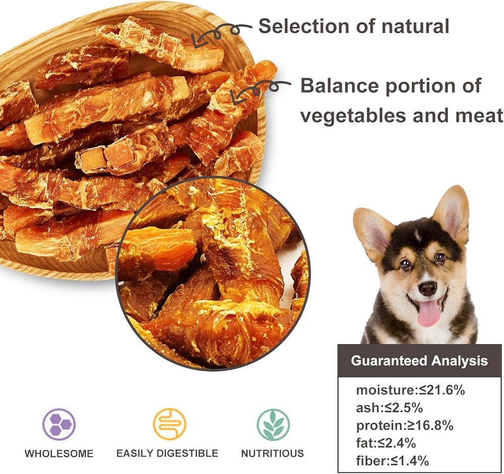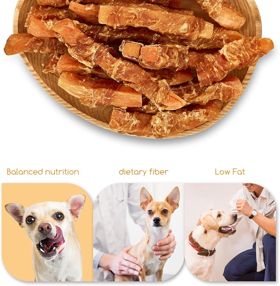 [مكونات ممتازة للصحة المثلى] تُصنع مكافآت الكلاب الخاصة بنا من الدجاج بدون جلد ملفوف بالبطاطا الحلوة، مما يضمن سلامة وصحة حيوانك الأليف. مع عدم وجود مكونات صناعية أو مواد مالئة أو مواد حافظة، يمكنك أن تشعر بالرضا تجاه إعطاء كلبك وجبة خفيفة صحية.