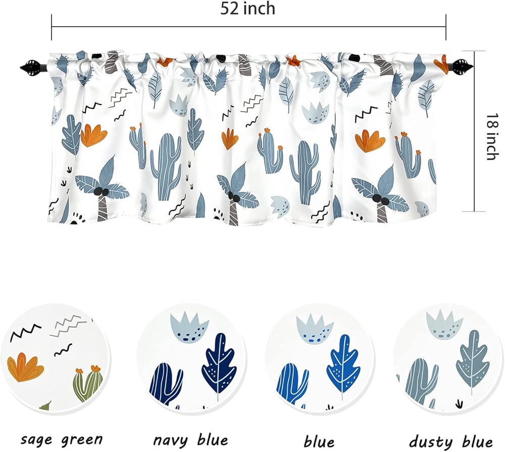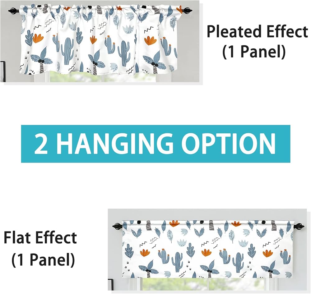 تفاصيل المنتج: تحتوي كل عبوة على قطعة واحدة بطول 52 × 18 بوصة ستائر نافذة مطبوعة بزهور الصبار، قطر جيوب القضيب 1.9 بوصة، سهلة التركيب والانزلاق