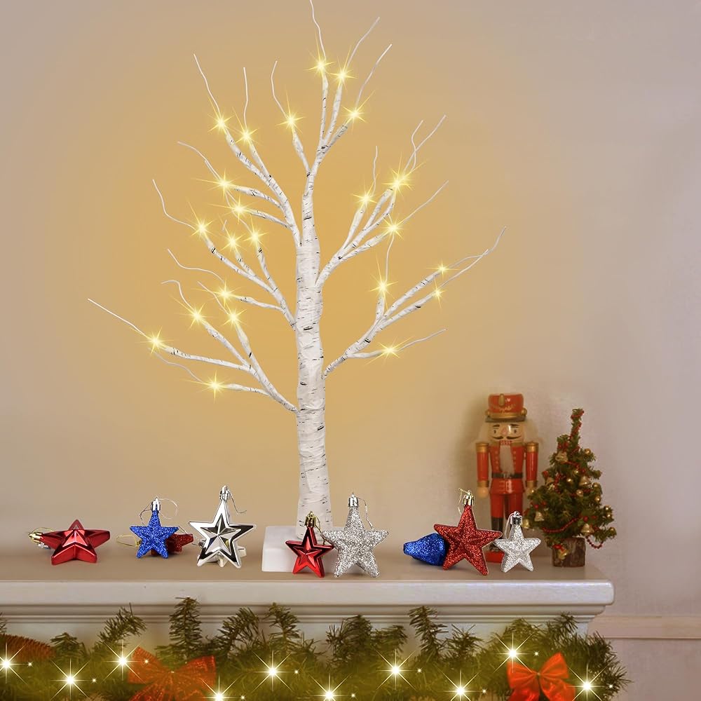 أضواء شجرة البتولا: تتضمن العبوة شجرة بتولا بيضاء واحدة و18 نجمة زينة معلقة. يبدو ضوء شجرة البتولا الذي يبلغ طوله 2 قدم مع قاعدة 4 بوصة × 4 بوصة و24 مصباح LED أبيض دافئ بسيطًا وأنيقًا. يمكنك أيضًا استبدال الزخارف المعلقة وفقًا لعناصر احتفالية مختلفة لخلق جو مريح ودافئ للمشهد.