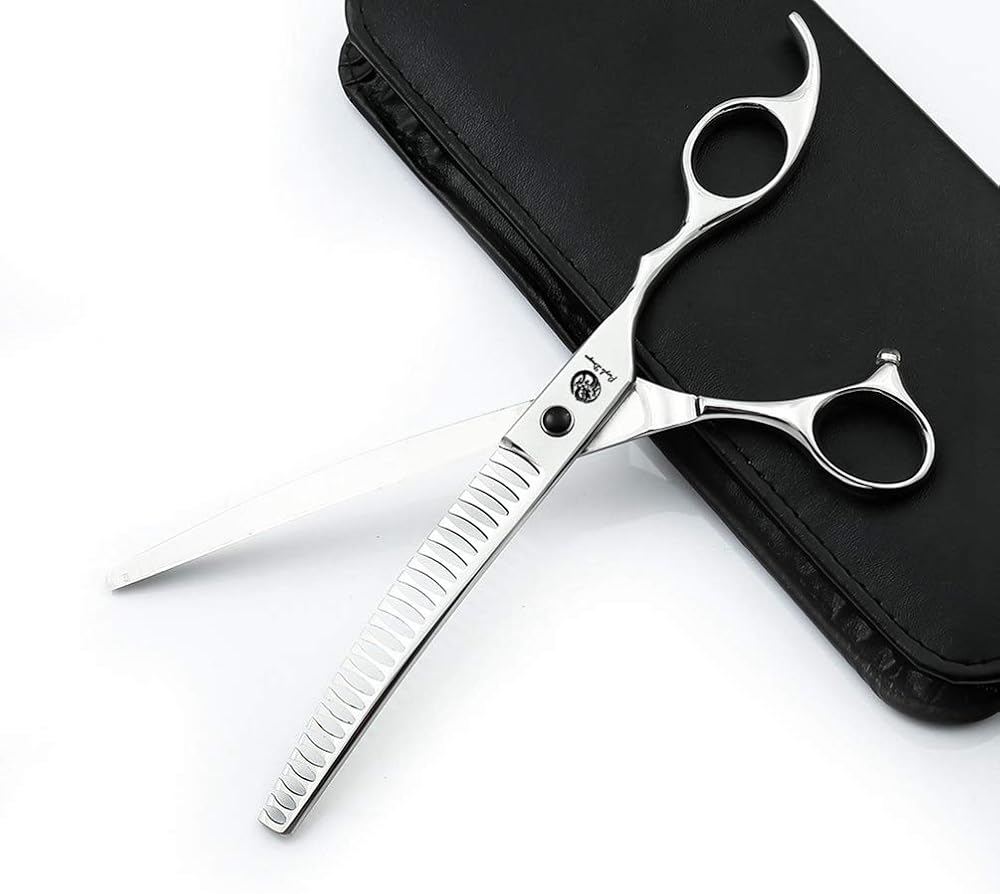 MATERIALl: 7.5 inch Downward Curved Pet Chunker Scissor 440C Grade stainless steel,complete stainless steel construction which is durable, functional and very strong.