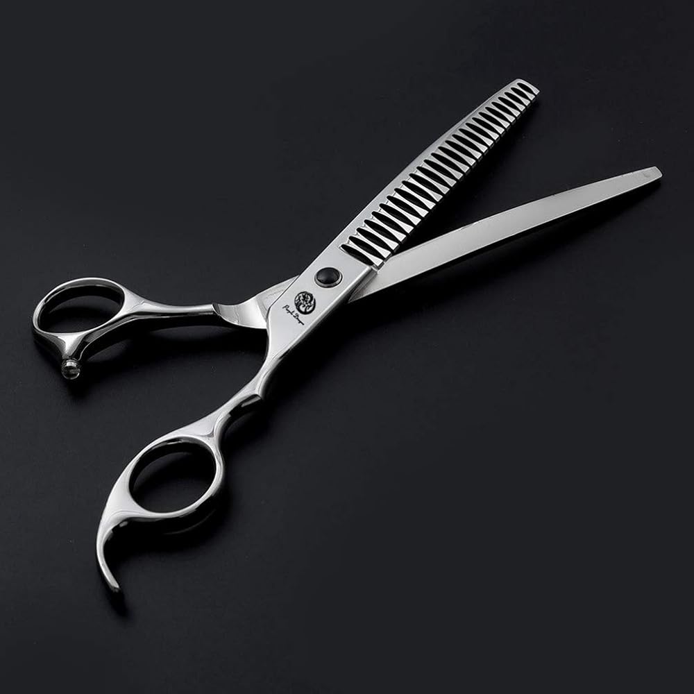 مقص العناية بالحيوانات الأليفة ذو المنحني إلى الأسفل مقاس 7.5 بوصة من بيربل دراجون - مقصات قطع الكلاب - مقصات شعر ترقق الحيوانات البالغة لمربية الحيوانات الأليفة أو العائلة DIY