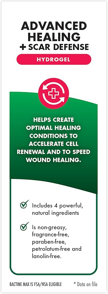 لا يحتوي على مكونات غير ضرورية: لا يحتوي باكتين ماكس هيدروجيل على مضادات حيوية أو منشطات، وهو غير دهني وخالي من العطور والبارابين والفازلين واللانولين.