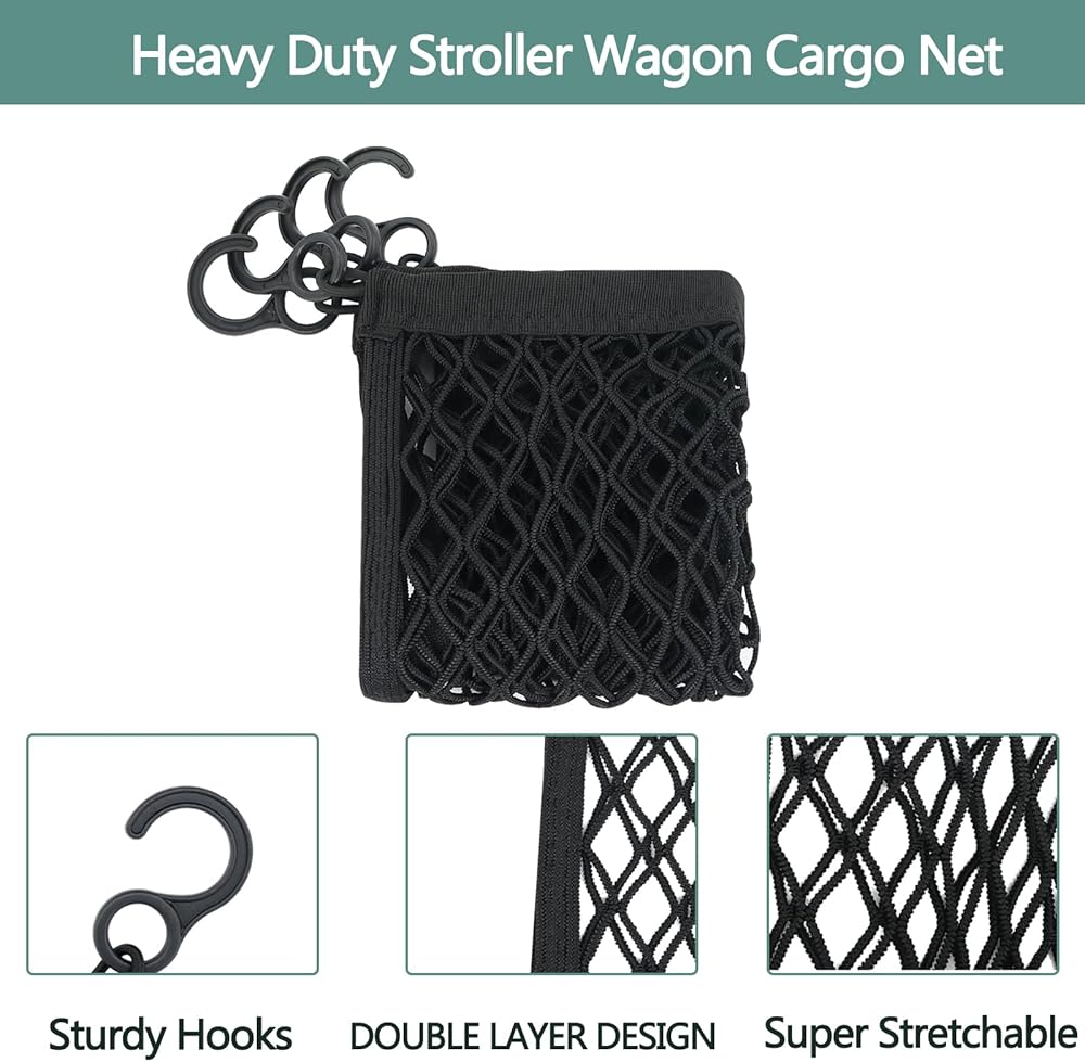 • High Quality Material:The Stroller Wagon cargo net is made of extremely durable nylon material with extra flexibility and endurance. It is durable enough to carry up to 20 pounds, ensuring longevity and meeting all your needs.
