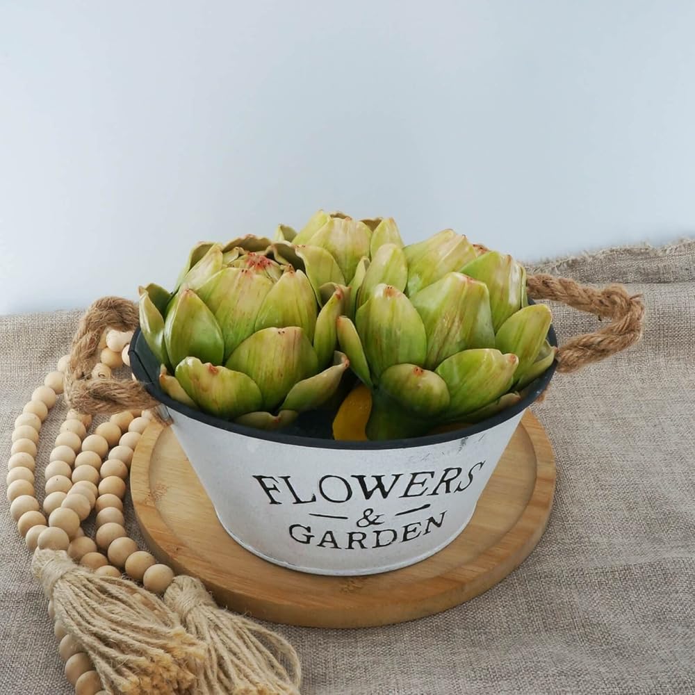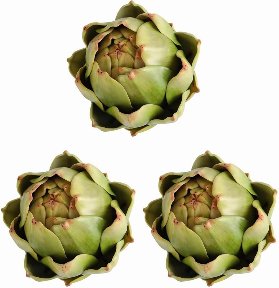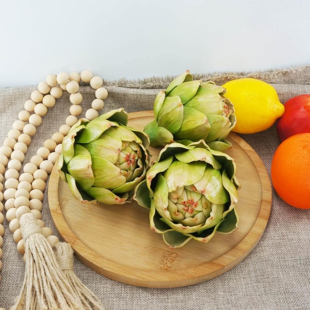 GiftHow حجم الخرشوف الاصطناعي الأخضر - الفواكه المزيفة والخضروات الواقعية لوعاء المطبخ وزخارف حشو المزهرية (3، أخضر)