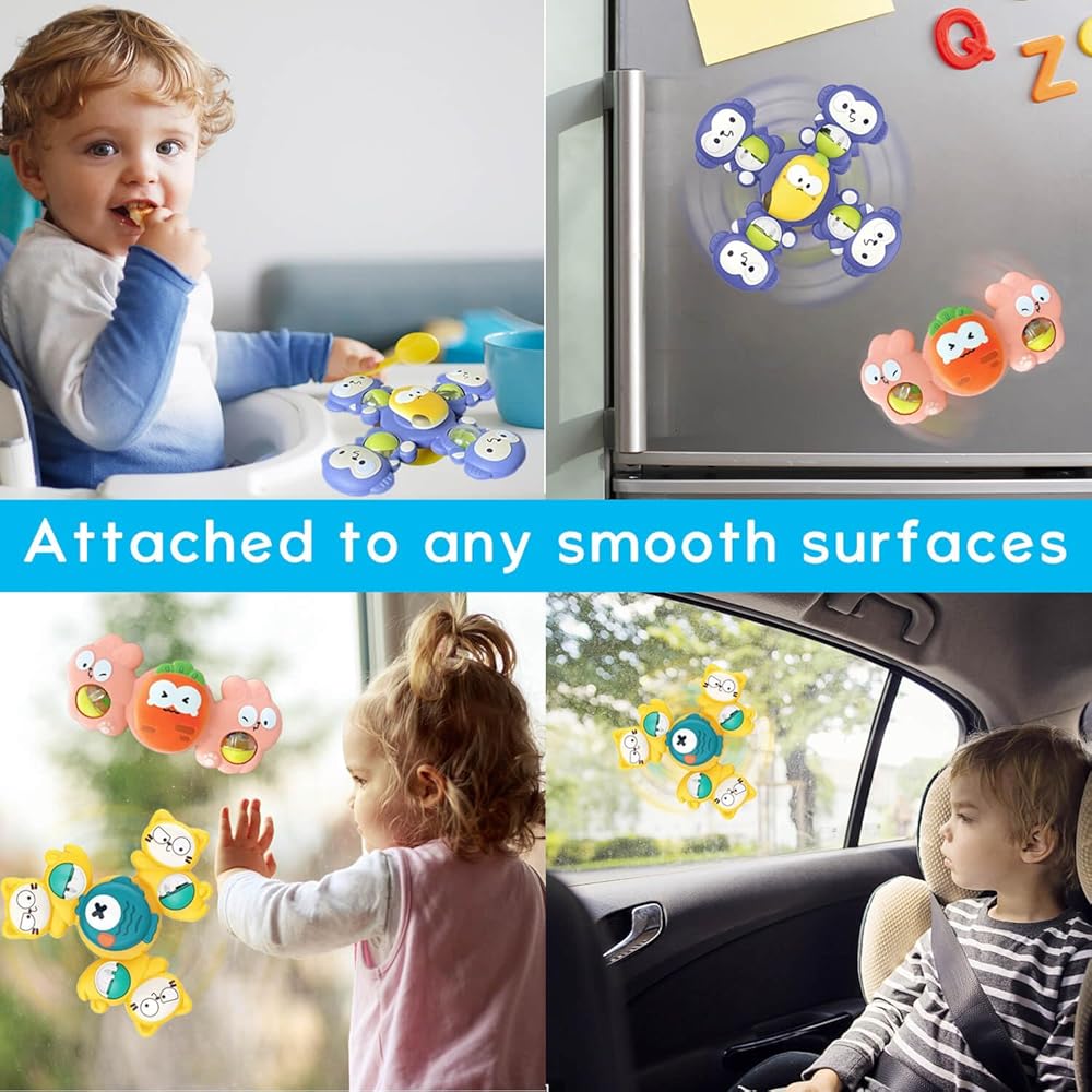 【أكواب شفط قوية للغاية】: تم تصميم هذه الألعاب خصيصًا بأكواب شفط قوية تلتصق بشكل آمن بأي سطح أملس، مما يضمن بقائها في مكانها وتدور بسرعة! سواء كانت طاولة طعام، أو حوض استحمام، أو نافذة سيارة. ستوفر لأطفالك ساعات لا حصر لها من المرح كل يوم.