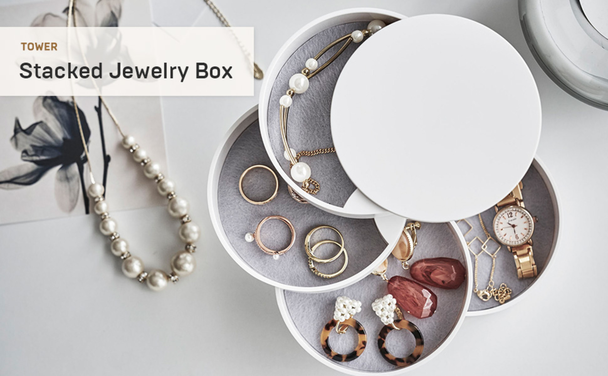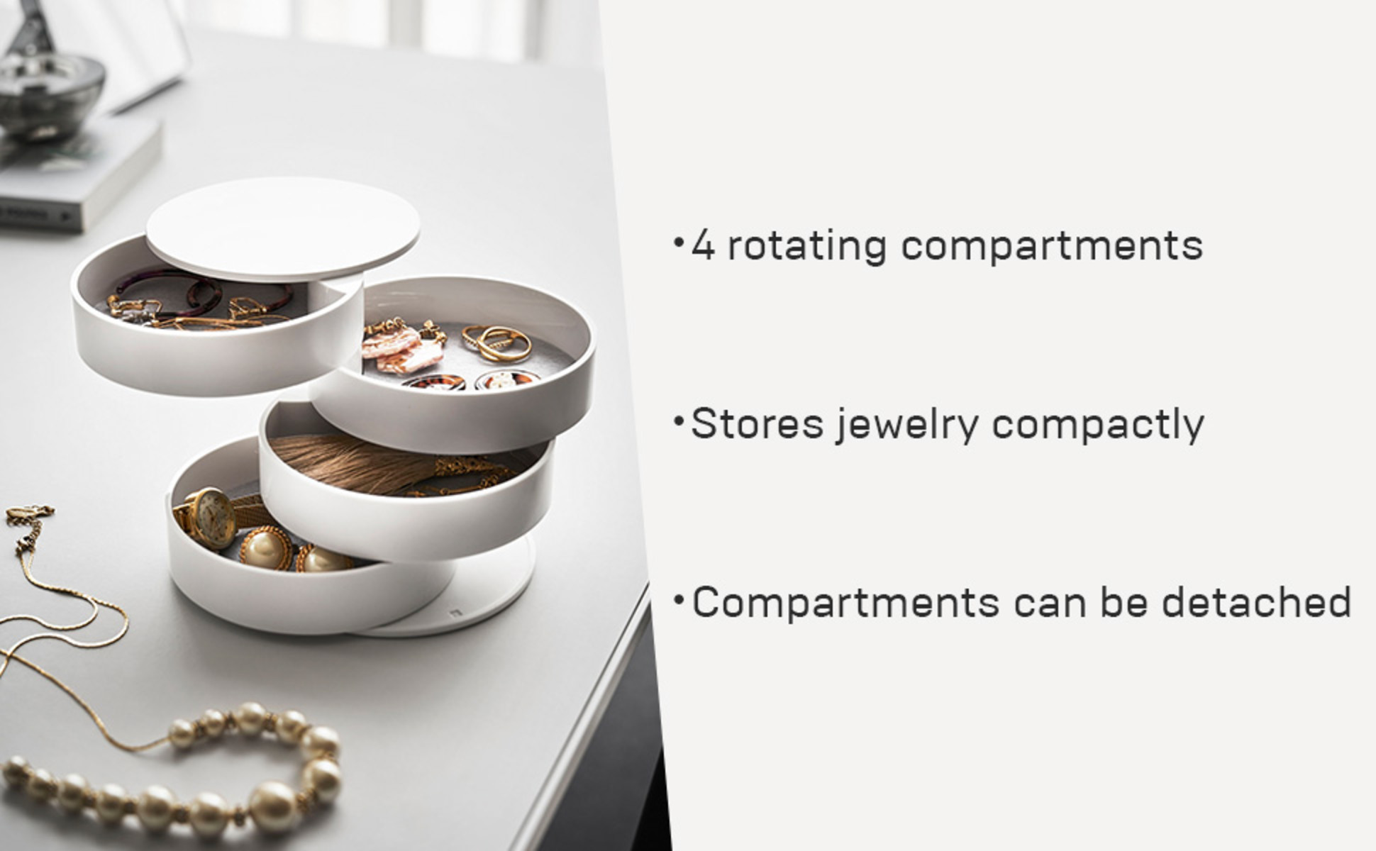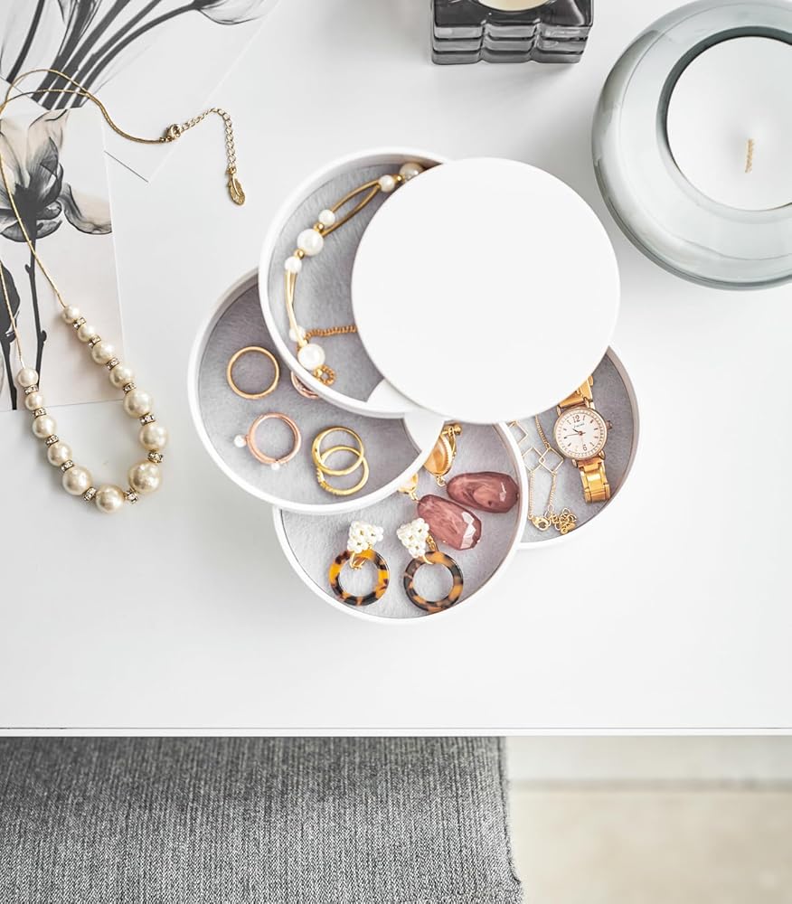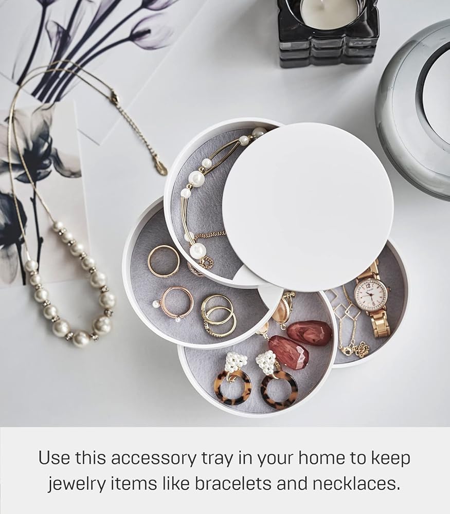 صينية الملحقات هذه بسيطة وأنيقة. بفضل 4 طبقات، فإنه يوفر مساحة تخزين كافية لإكسسواراتك المفضلة. حافظ على كنوزك الصغيرة آمنة بطريقة جميلة.