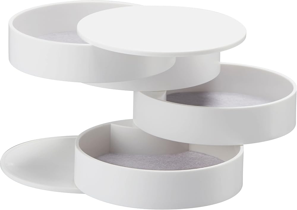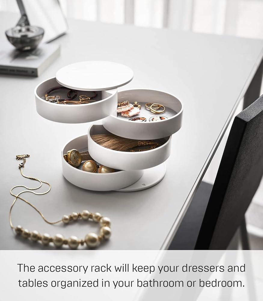 منظم مجوهرات Yamazaki Home Secti Oned لوازم تزيين الأظافر وإكسسوارات القرط وحامل تخزين عرض دوار بلاستيك ABS مقاس واحد أبيض