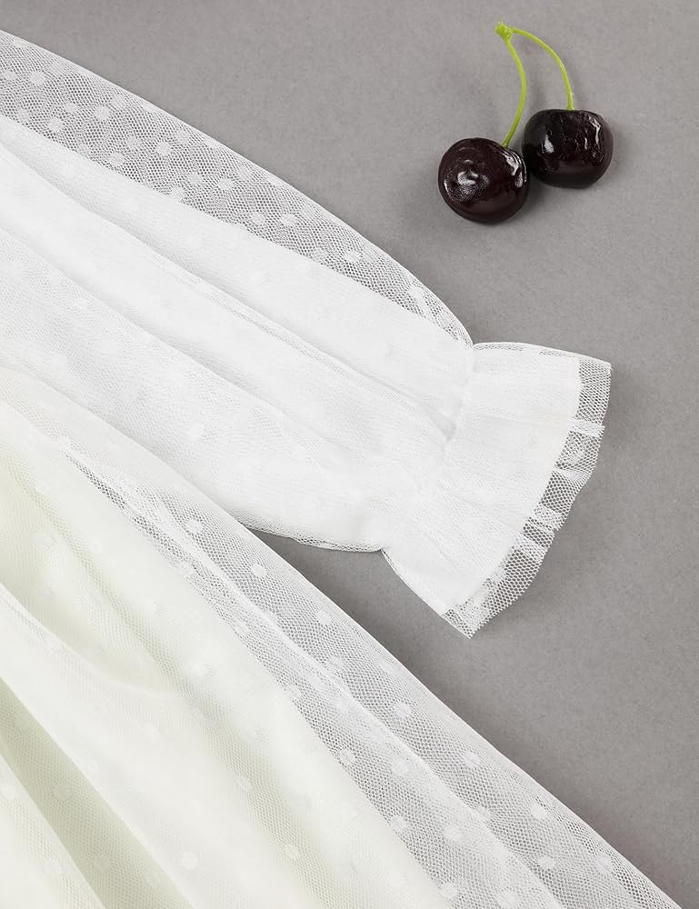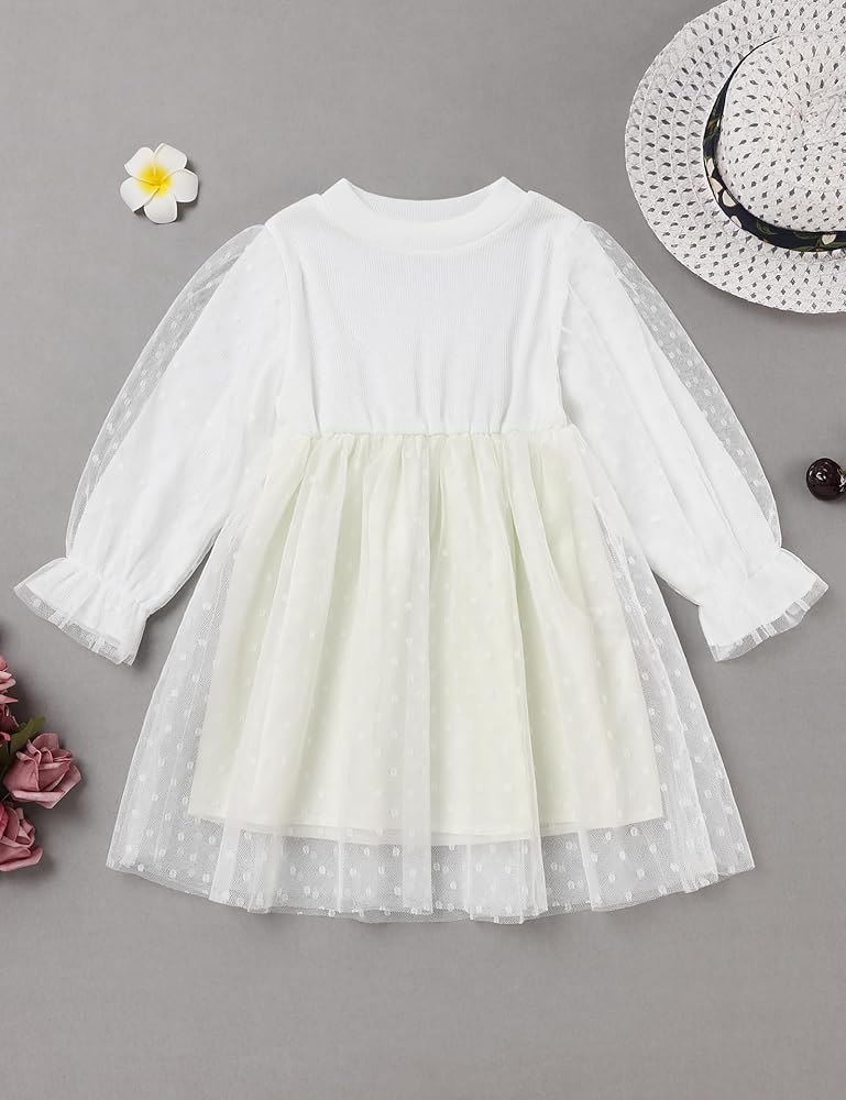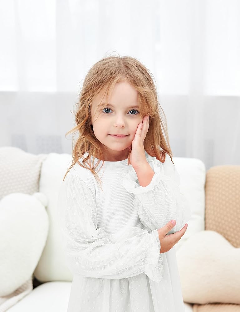 • المزايا: الفستان ذو اللون الصلب مصمم مع نقاط من التول السويسرية على الأكمام والتنورة، مما يجعل طفلتك تبدو جميلة وأنيقة. مع بطانة ناعمة، حتى لا تقلق بشأن ما إذا كانت فساتين الفتيات الصغيرات هذه شفافة أم لا.
