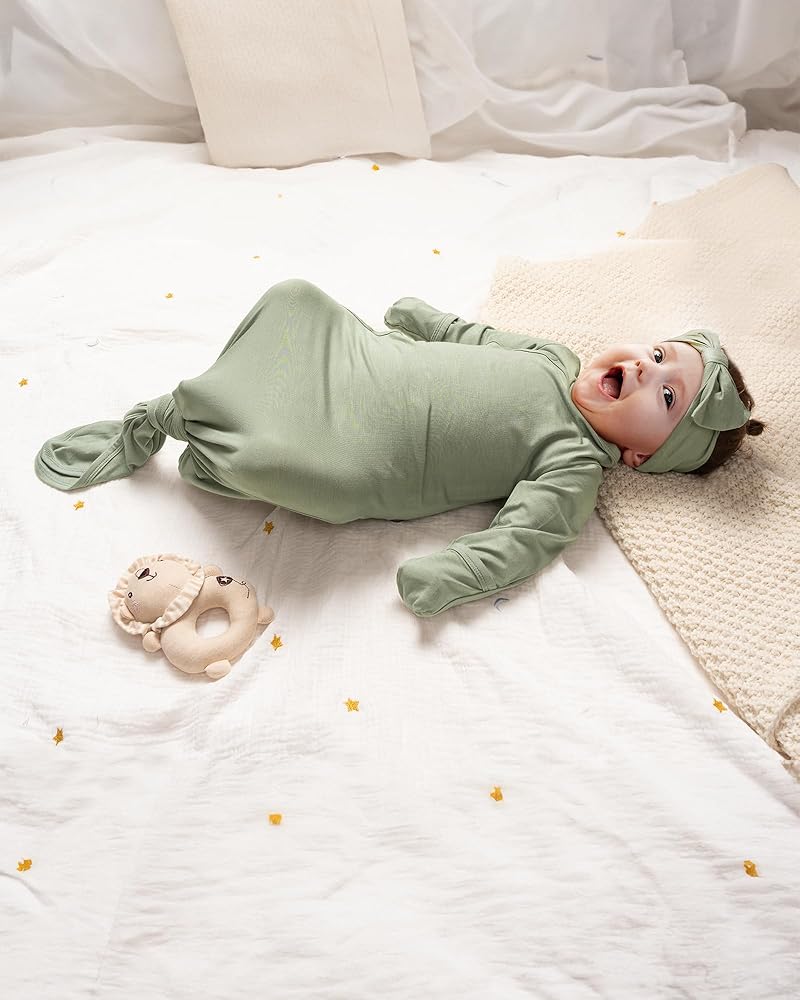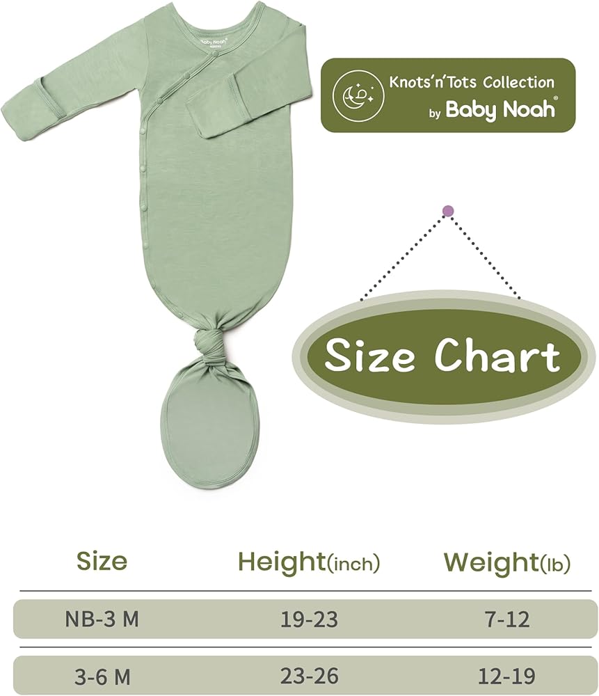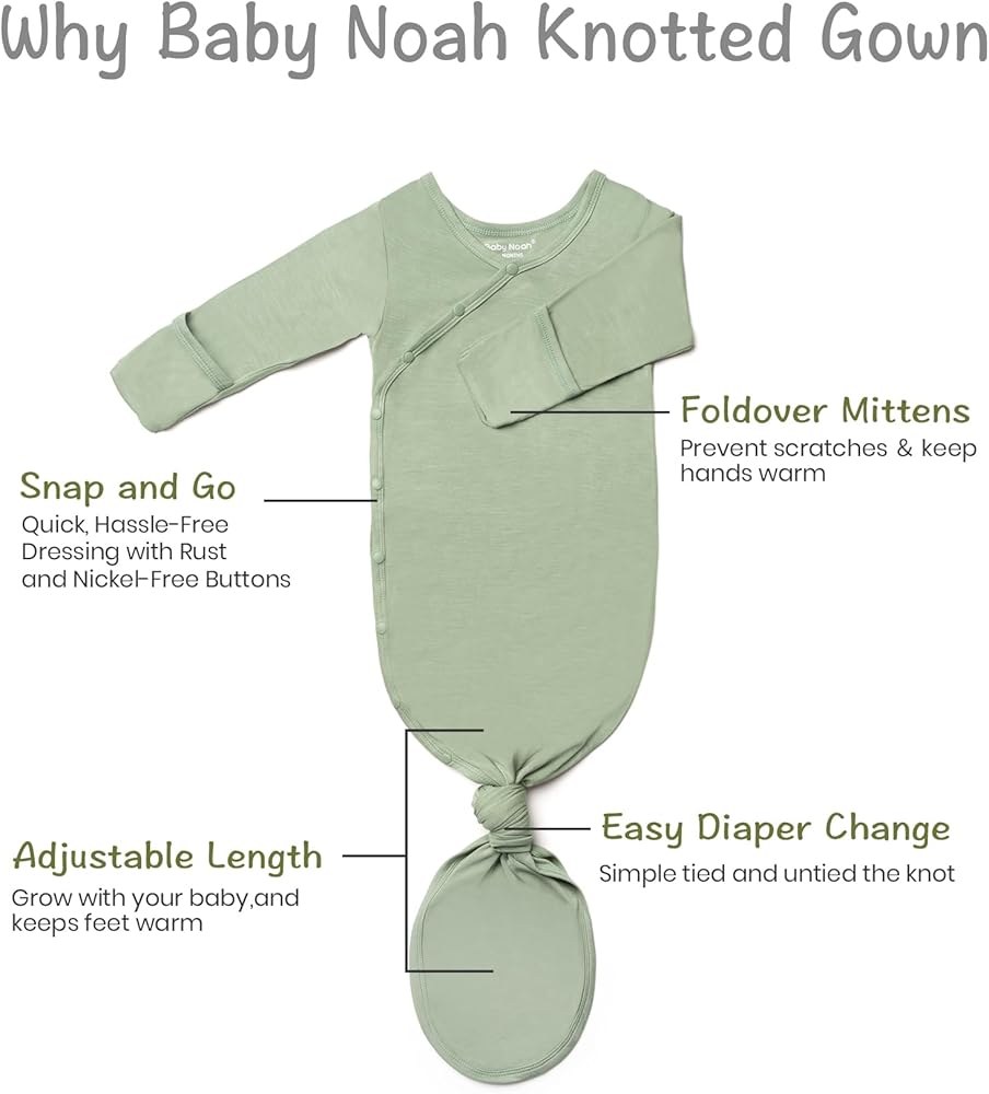 【Buttery Soft】Crafted from a blend of 95% modal and 5% spandex, this fabric is incredibly soft and stretchy. The Baby Noah knotted gown offers ultimate comfort for delicate baby skin, ensuring a peaceful night's sleep for your little one.