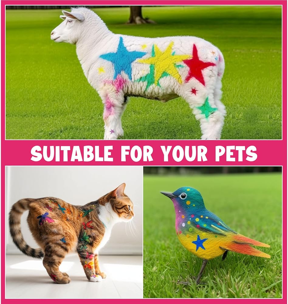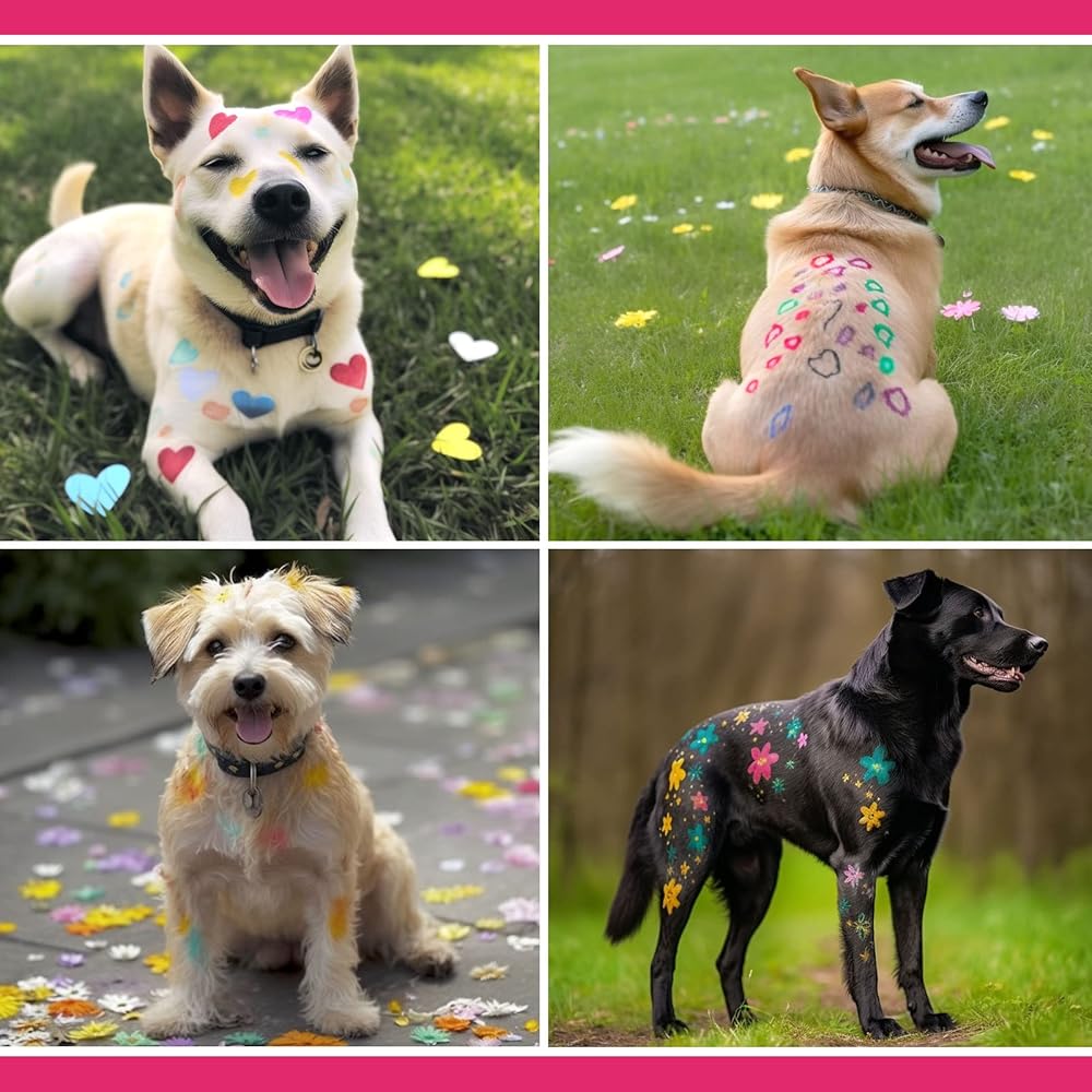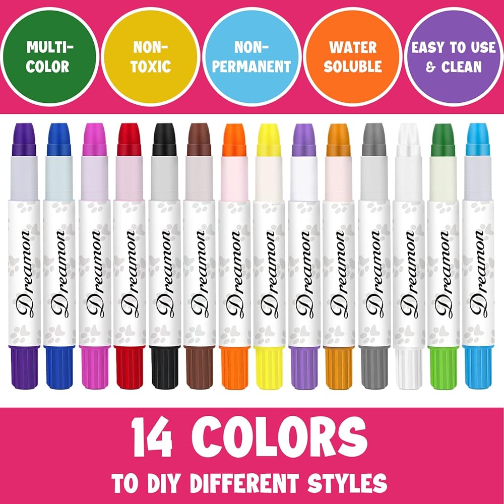 [Safe and High Quality] Pet safe hair dye pens are made of non-toxic, non-permanent material , safe hair dye for pet dogs. Water soluble is support to easily clean with a shampoo bath or fades on its own within a few days.