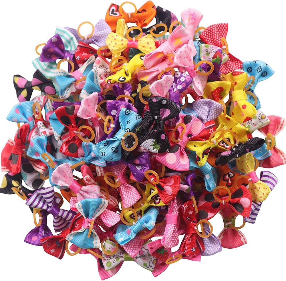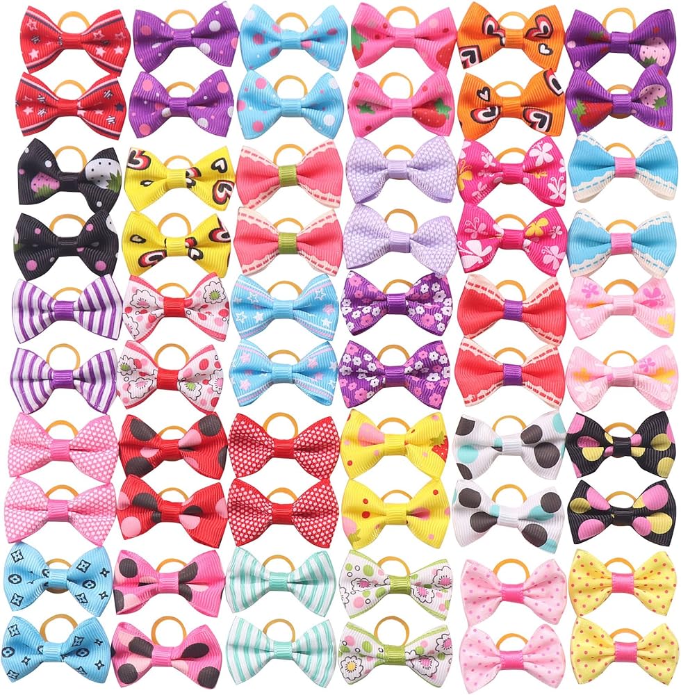 ياكا 60 قطعة (30 باريس) ربطات شعر صغيرة على شكل فيونكة مع اربطة مطاطية، اكسسوارات شعر يدوية الصنع، منتجات العناية بالحيوانات الاليفة (60 قطعة، انماط لطيفة) (اربطة مطاطية نمط 2)