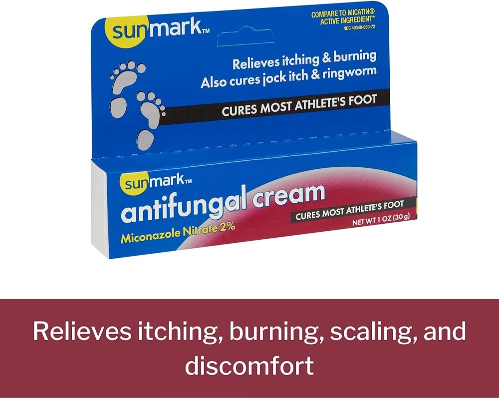 كريم مضاد للفطريات مع 2% نترات ميكونازول - يخفف الحكة والحرق والتشقق المرتبط بالقدم الرياضي، وحكة اللعب، والقوباء الحلقية - أنبوب 1 أونصة، عدد 1