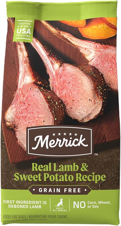 • Merrick Premium Grain Free Dry Dog Food, Real Chicken And Sweet Potato Recipe. Wholesome And Natural With Added Vitamins And Minerals Kibble For Adult Dogs