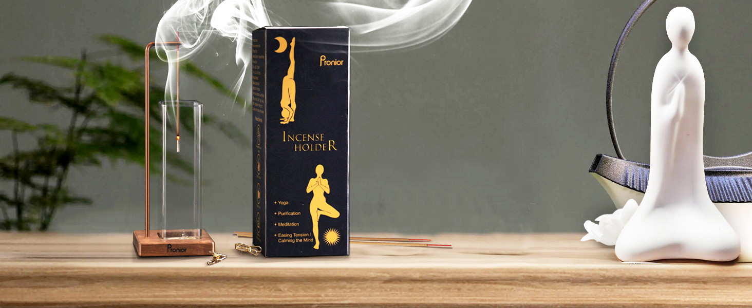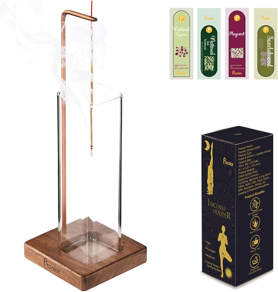 حامل بخور للعصي، مبخرة عصرية مع اداة التقاط رماد زجاجية قابلة للازالة، حامل عصي بخور مضاد للرماد للاسترخاء واليوجا والمنتجعات الصحية والوساطة في المنزل وهدية ديكور من برونيور
