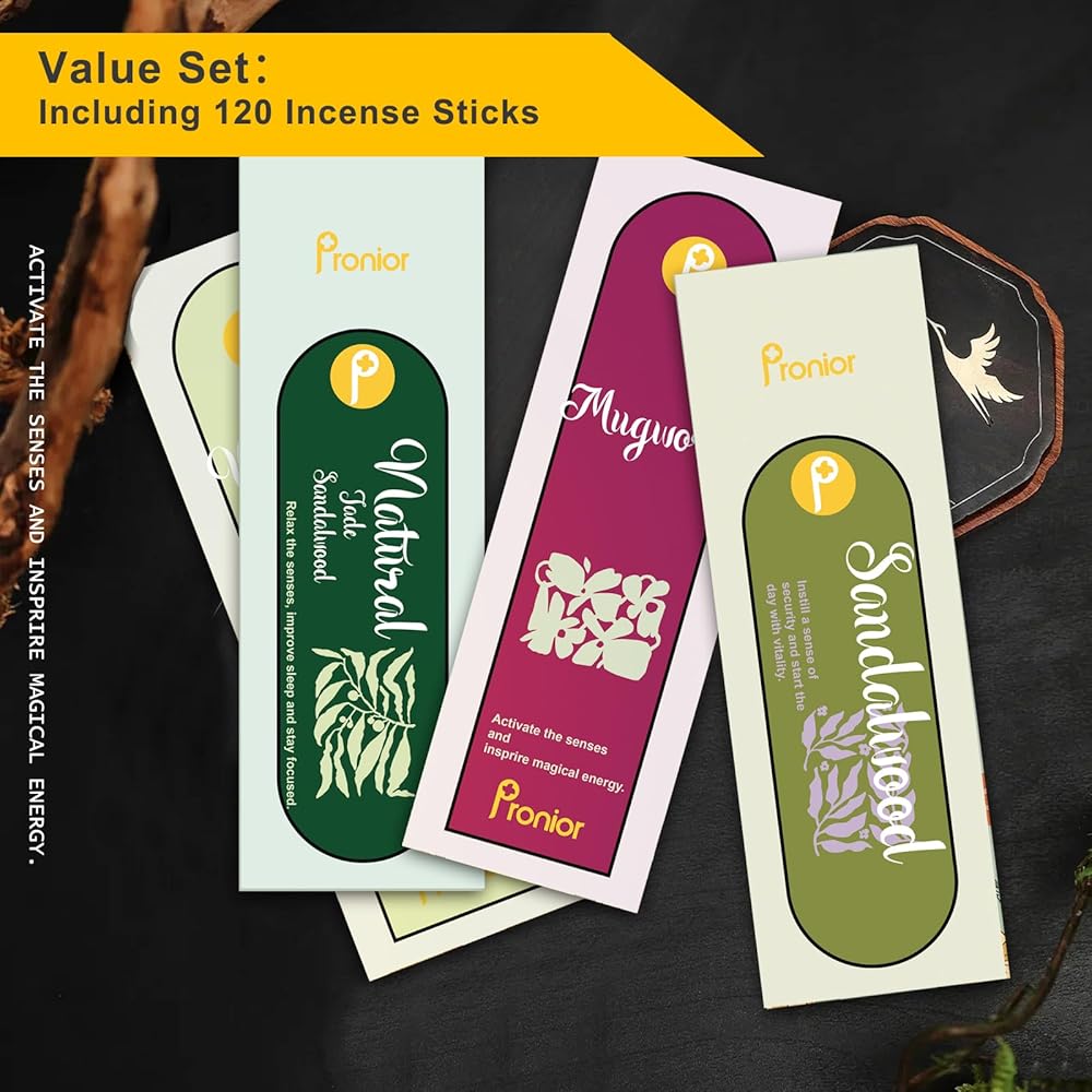 • مجموعة قيمة: حامل أعواد البخور من برونيور مع 4 روائح قمنا بتكوينها بعناية من أجلك (إجمالي 120 عصا)؛ أعواد البخور آمنة وغير سامة. يمكن للرائحة المهدئة أن تخلق جوًا مريحًا وهادئًا وممتعًا بسرعة.