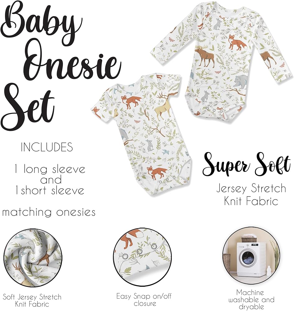 متعددة الاستخدامات: هذه المجموعات من ملابس الأطفال ذات الأكمام الطويلة والأكمام القصيرة لحيوانات الغابة مناسبة لكل من المواسم الباردة والدافئة. مثالي للملابس الكاجوال، ولجلسات تصوير الأطفال، ومنشورات وسائل التواصل الاجتماعي، والاحتفالات. اختيار ممتاز لأساسيات حديثي الولادة، وهدايا استحمام الطفل، وحزمة المنزل في المستشفى، ومنتجات تسجيل الأطفال للآباء المتوقعين أو أي مناسبات خاصة أخرى.
