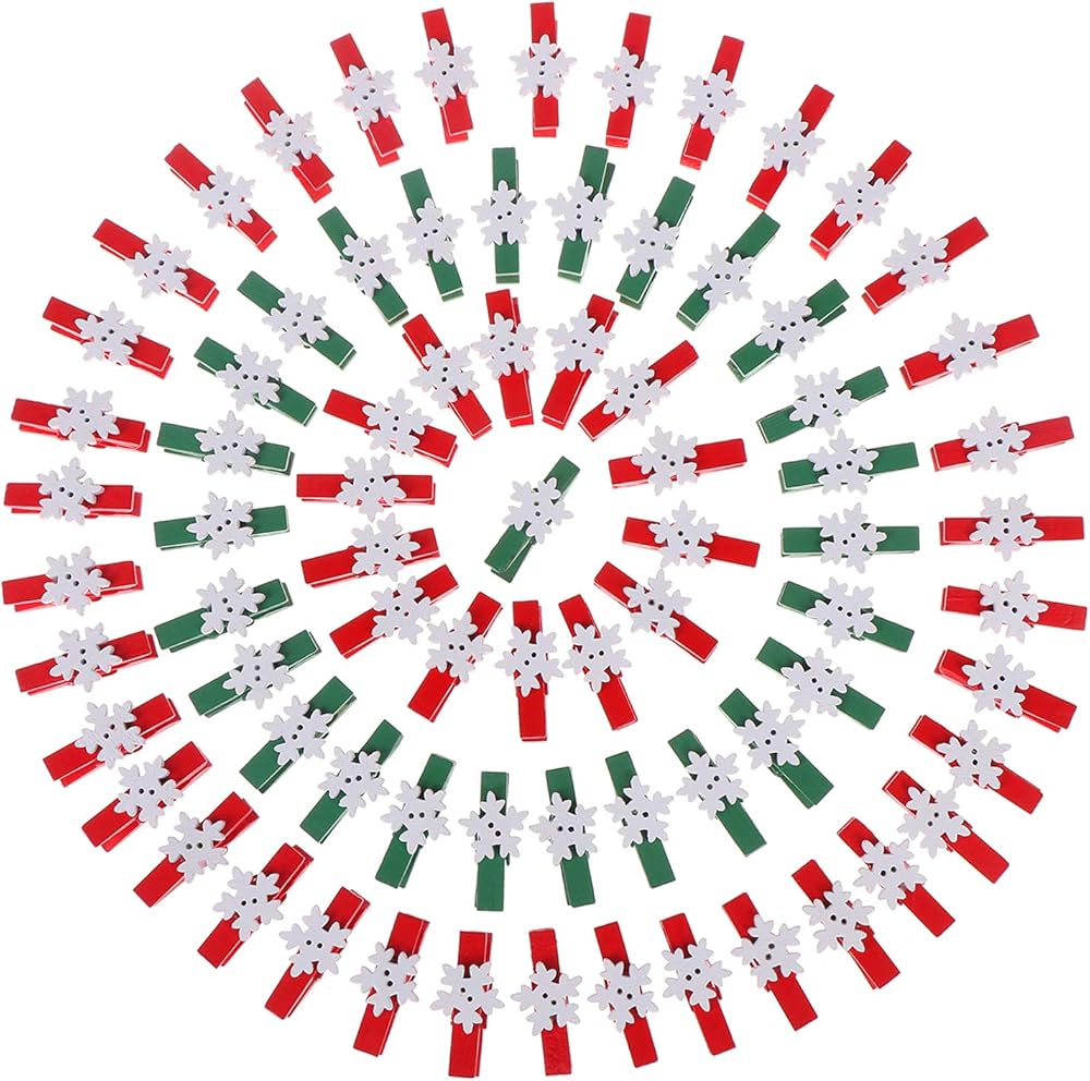 ❄ مجموعة مشابك خشبية صغيرة ندفة الثلج: تتضمن العبوة 100 قطعة دبابيس غسيل ملونة (2 لون مختلف)