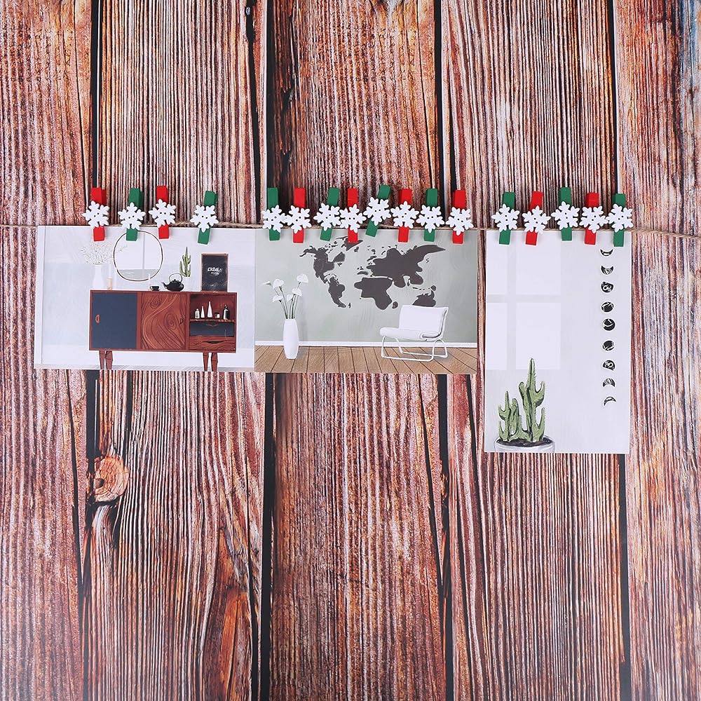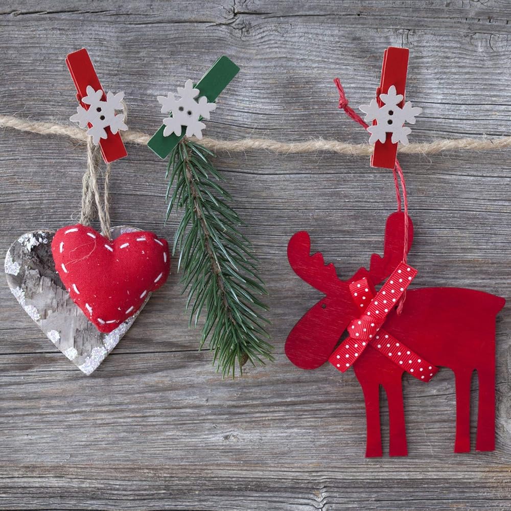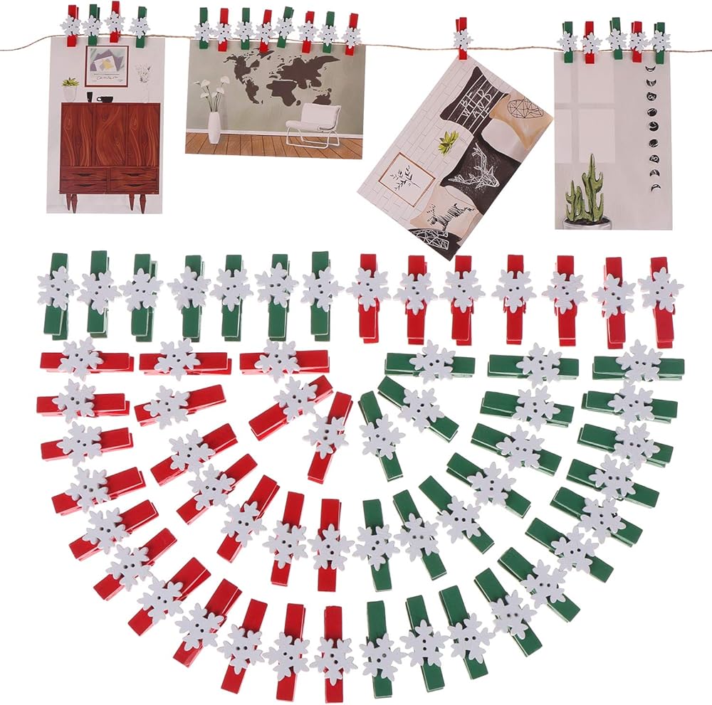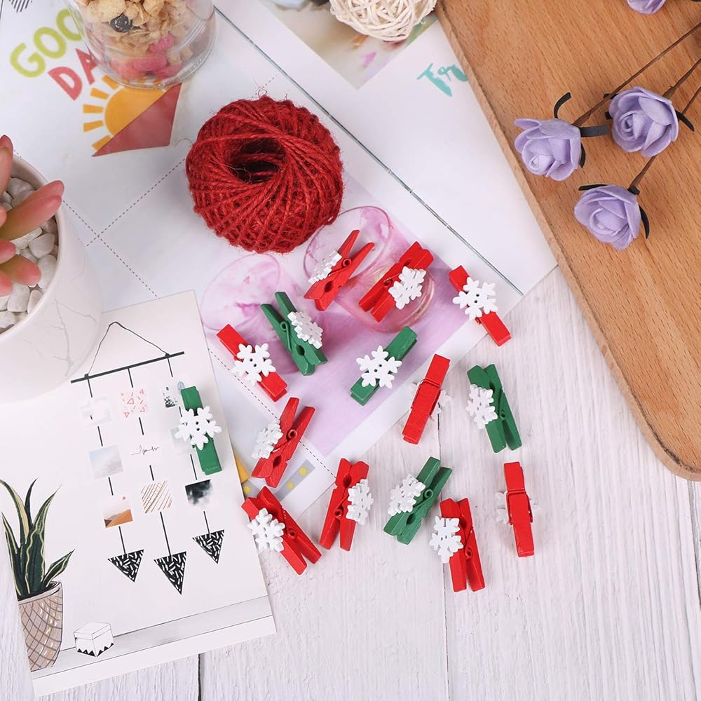 ❄ تصميم جميل: مجموعة مشابك غسيل خشبية صغيرة بتصميمين، مشابك خضراء مع ندف ثلج أبيض، مشابك حمراء مع ندف ثلج أبيض، لطيفة ورائعة، تجلب الألوان والمرح إلى غرفتك أو حفلتك.
