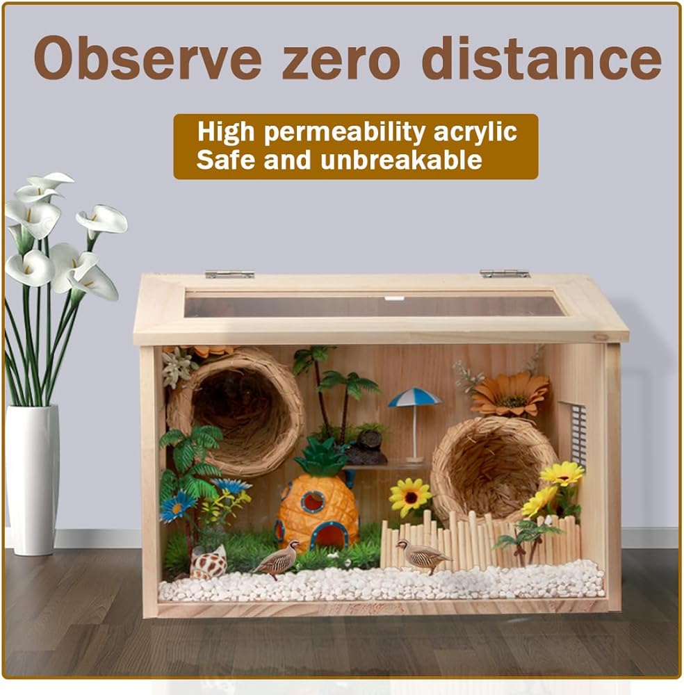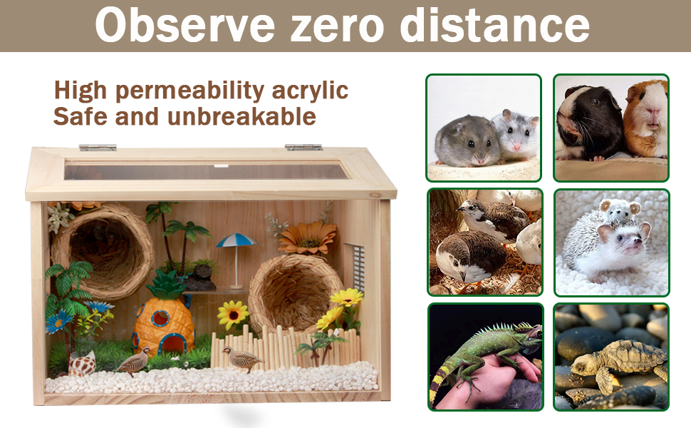 الصنوبر الطبيعي: أقفاص الخنازير الغينية الخشبية هذه مصنوعة من مادة الصنوبر عالية الجودة مع لوحة أكريليك سميكة. قفص الأرانب، يسمح لك فيلم الأكريليك المشرق ذو المساحة الكبيرة بمشاهدة أنشطة حيوانك الأليف من زوايا متعددة. الأكريليك عالي النفاذية آمن وغير قابل للكسر
