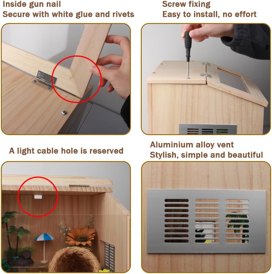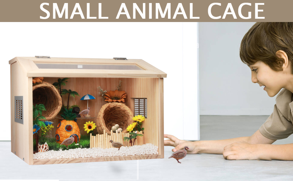 قفص هامستر NENHEIONI خشبي مقاس 15.7 × 11.8 × 11.8 بوصة، أقفاص خنازير غينيا، للفئران الهامستر الجربوع والليمون ديغوس أو غيرها من الحيوانات الأليفة صغيرة الحجم (المنتج لا يشمل الديكور الداخلي)