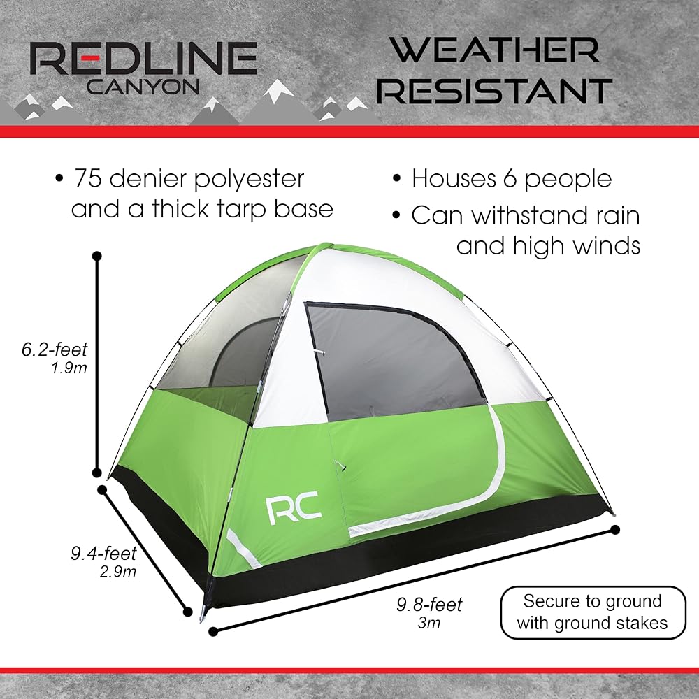 خيمة تخييم عائلية منبثقة من ريد لاين كانيون تتسع لـ 6 اشخاص - تصميم قبة مقاومة للماء والرياح والطقس، خيمة كبيرة للتخييم والمشي لمسافات طويلة وتسلق الجبال