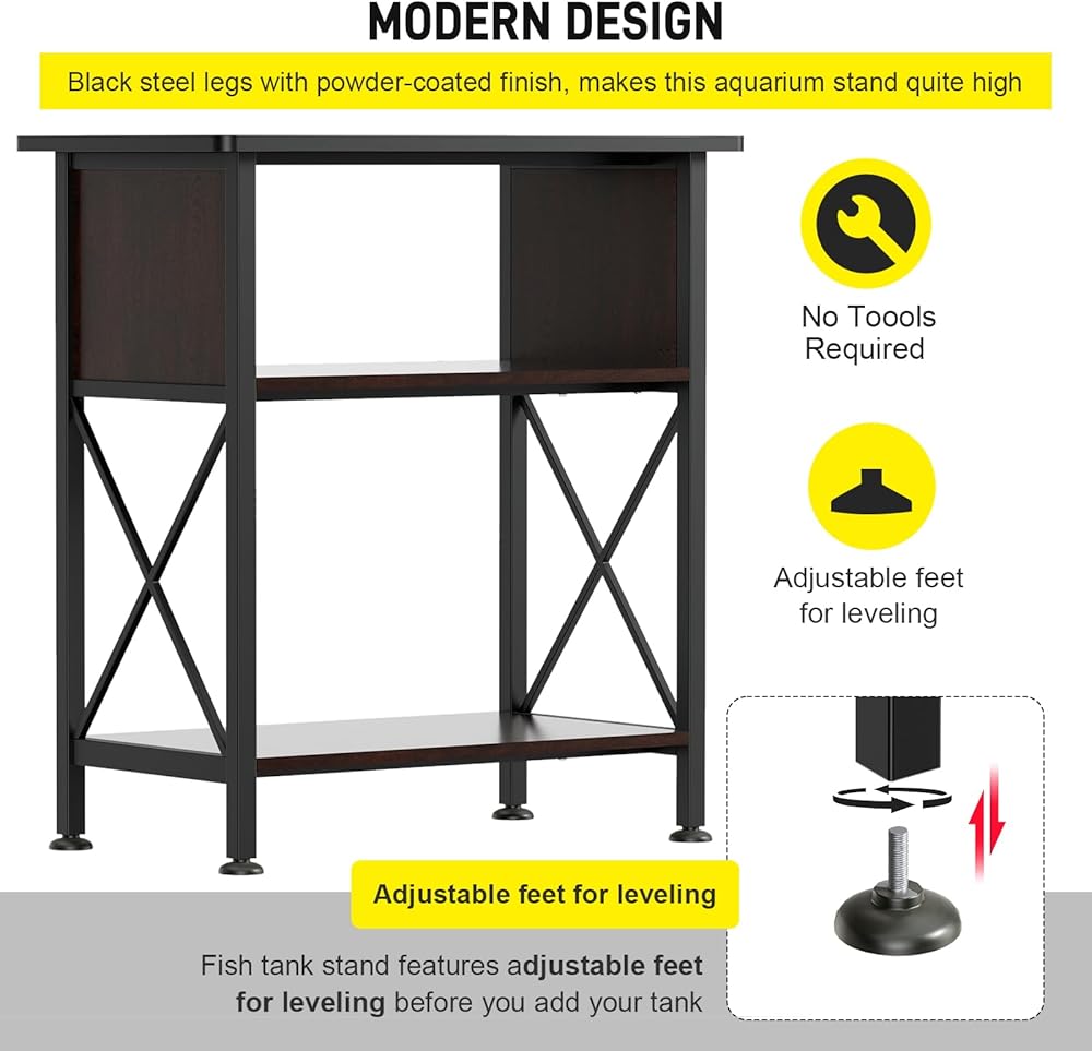【قوي ومتين】- مصنوع من الستيل شديد التحمل مع إطار قوي بسمك 4 سم، حامل حوض السمك المعدني هذا مصمم ليدوم طويلاً. الحوامل الخاصة بنا مطلية بمسحوق لمقاومة الصدأ والتلف الناتج عن الماء، مما يضمن بقائها قوية ومتينة ومقاومة للرطوبة. قل وداعًا لحوامل حوض الأسماك المتذبذبة والرديئة الموجودة في العديد من المنتجات الأخرى في السوق.