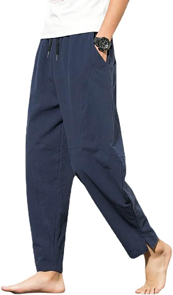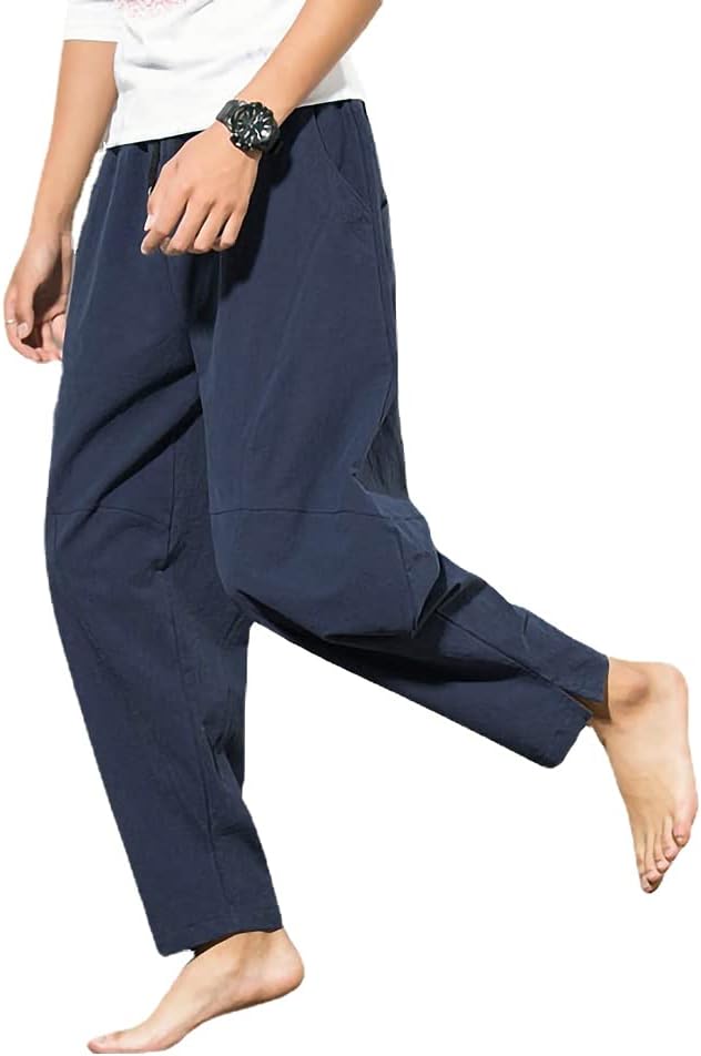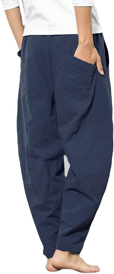 اختيار جيد: وفقًا لتفضيلاتك، يمكنك ببساطة ارتداء هذا البنطال الفضفاض للرجال مع قميص أبيض وزوج من الأحذية الكاجوال. سراويل الكتان الرجالية الكاجوال بتصميم واسع مناسبة لجميع الأعمار، كما أنها هدية رائعة لوالدك وابنك وصديقك