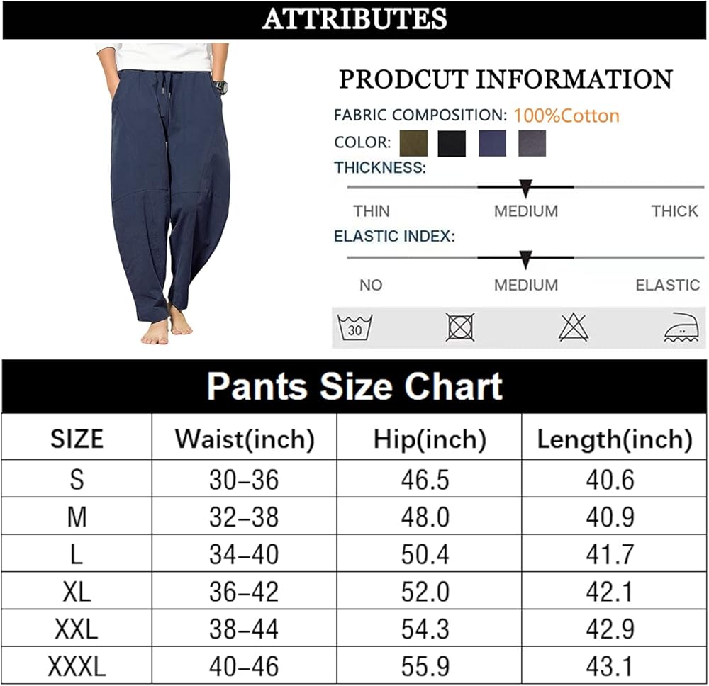 خامة فاخرة: بنطال رجالي برباط خصر مرن مصنوع من كتان قطني عالي الجودة مسامي وخفيف الوزن، وليس من السهل أن ينكمش أو يبهت. بنطال WZIKAI المصنوع من القطن والكتان يحمي البشرة تمامًا، مما يجعلك تشعر بالراحة عند ارتدائها
