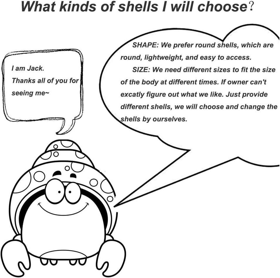 • ستة أنواع مختلفة من الأصداف: ما إذا كان مقاس واحد يكفي لحياة سرطان البحر الناسك؟ لا!!! يختار سرطان البحر الناسك صدفة المحارة وفقًا لحجمها ولون بشرتها في أوقات مختلفة. لذلك، من المهم إعداد أصداف بحرية مختلفة لسلطعون الناسك الخاص بك. تتوفر ستة أصداف بألوان مختلفة من بيتاوي لاختيار سلطعون الناسك الخاص بك.