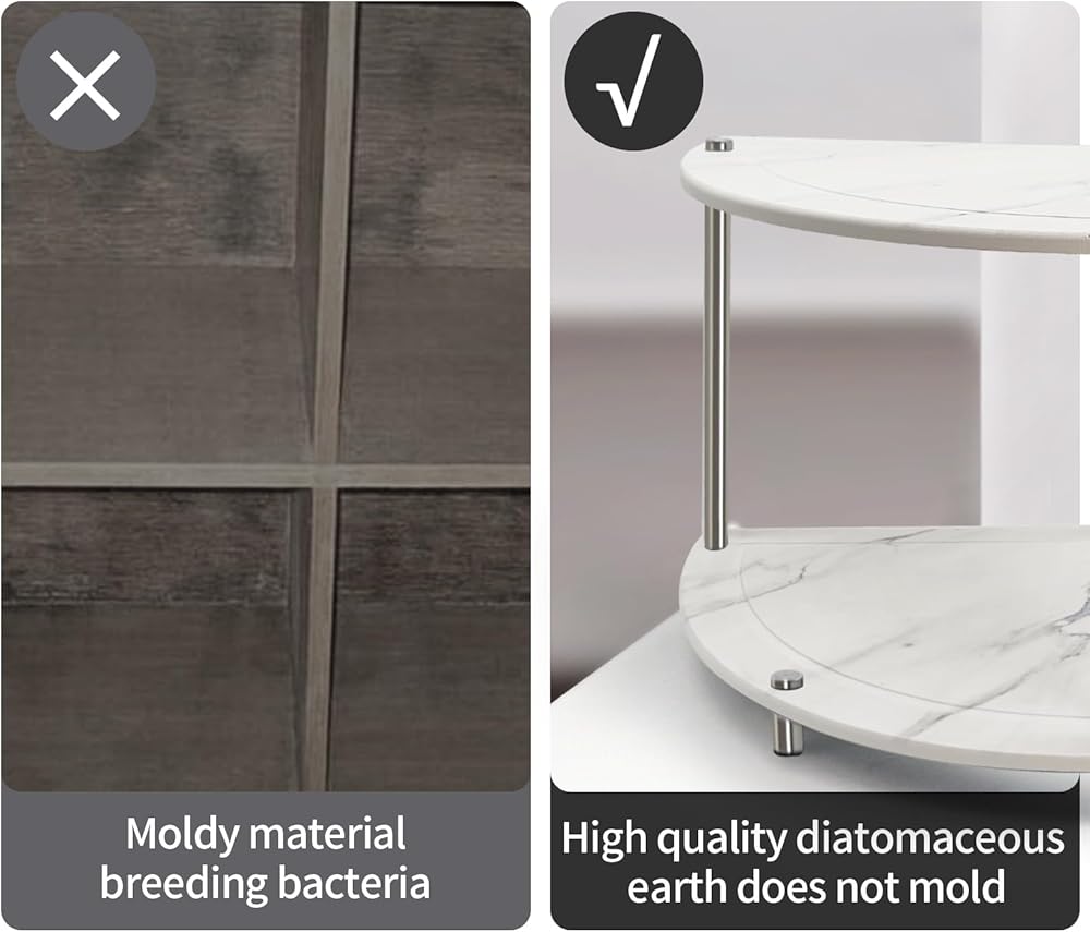 • Drying Instantly:Our corner bathroom organizer absorb moisture at the bottom of cosmetic bottles quickly, can evaporate water in just minutes, no water stains remain, keep your corner shelf bathroom clean and dry, Keep the bottom of cosmetic bottles dry and mold-free.