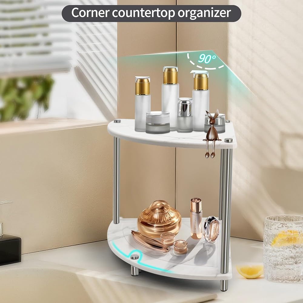 Pletmin Corner Bathroom Counter Organizer Instant Dry Bathroom Countertop Shelf Makeup Organizer Vanity Corner Storage Counter Corner Shelf Skincare Countertop Organizer
