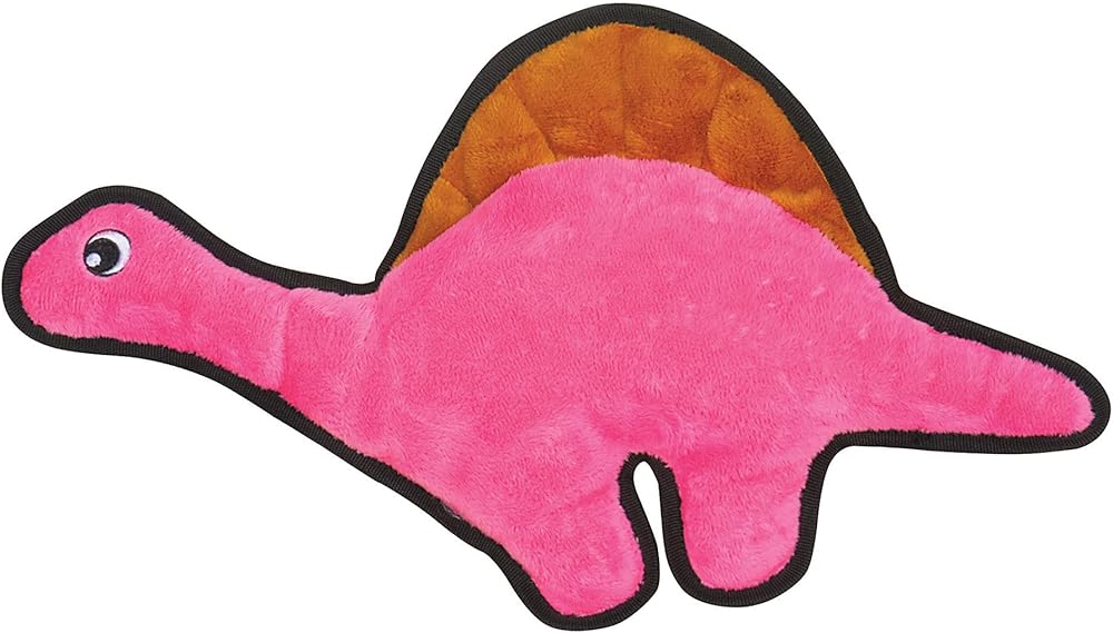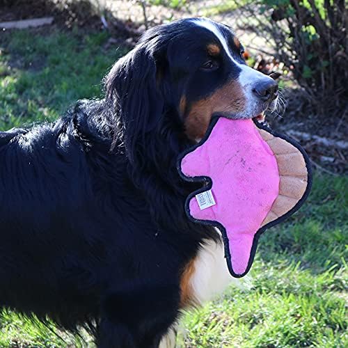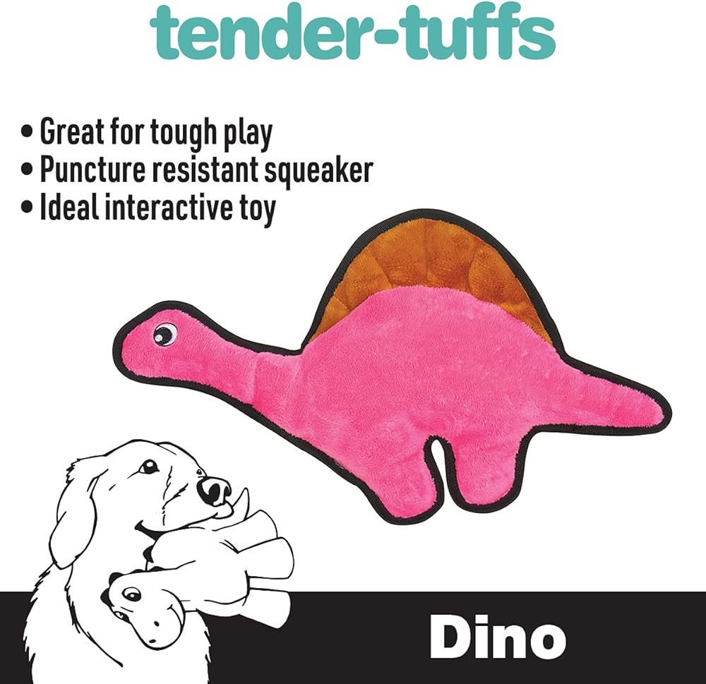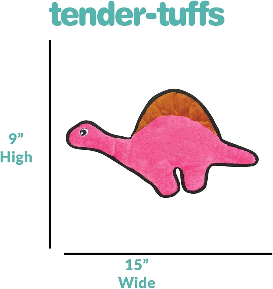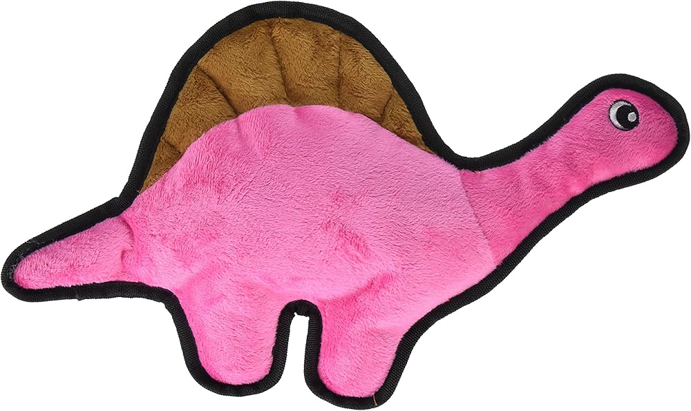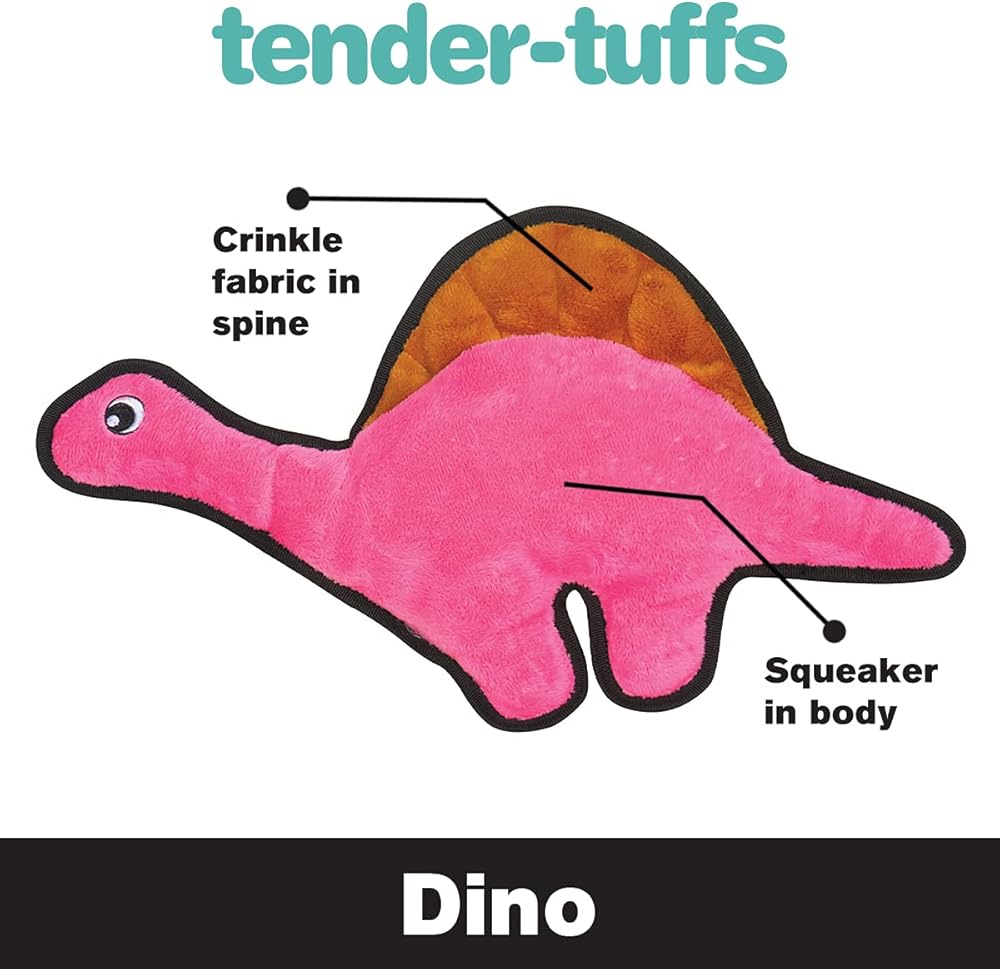 لعبة سناجل بابي تيندر تاف مجعدة - لعبة للكلاب من القطيفة القوية - ديناصور وردي برقبة طويلة مع صوت مجعد وخياطة متينة