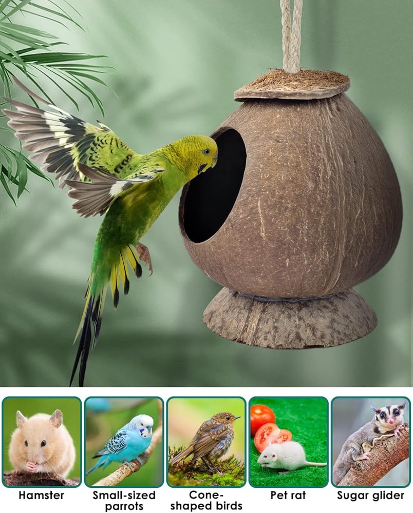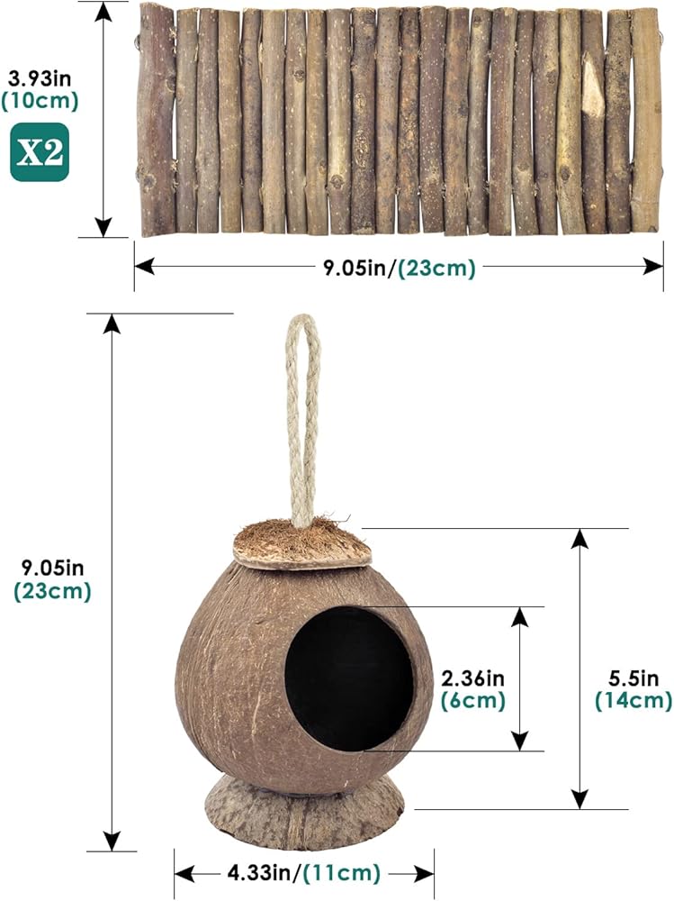 منزل هامستر لطيف - مصنوع من قشرة جوز الهند المجففة الطبيعية، وخالي من الصدأ والعفن، ومتوافق مع سلالم التسلق الخشبية، يوفر مخبأ الهامستر KATUMO للهامستر مكانًا آمنًا وممتعًا للنوم والتسلق والاختباء والاستكشاف خلال النهار. مثالي كسرير دافئ ومريح مع إضافة نشارة الخشب عندما يأتي الشتاء. سهولة الوصول إلى الداخل أو الخارج دون أي ضرر. مع خطاف نشط، يمكن أن يكون كوخ جوز الهند هذا أيضًا عشًا لأبو بريص وطائرة السكر الشراعية والسحالي والعصافير وطيور الببغاء وحتى الثعابين وغيرها من الحيوانات الصغيرة.