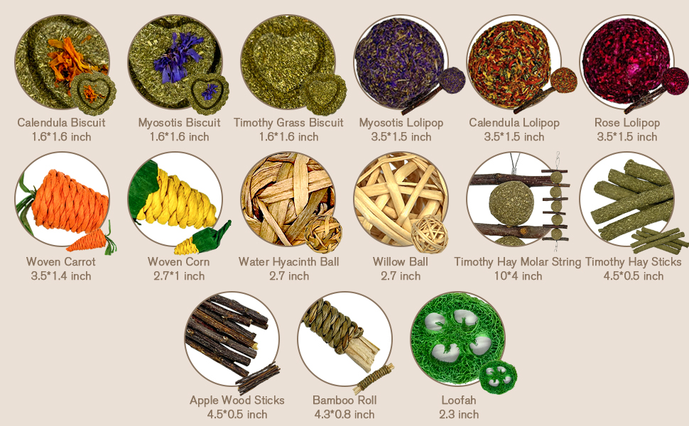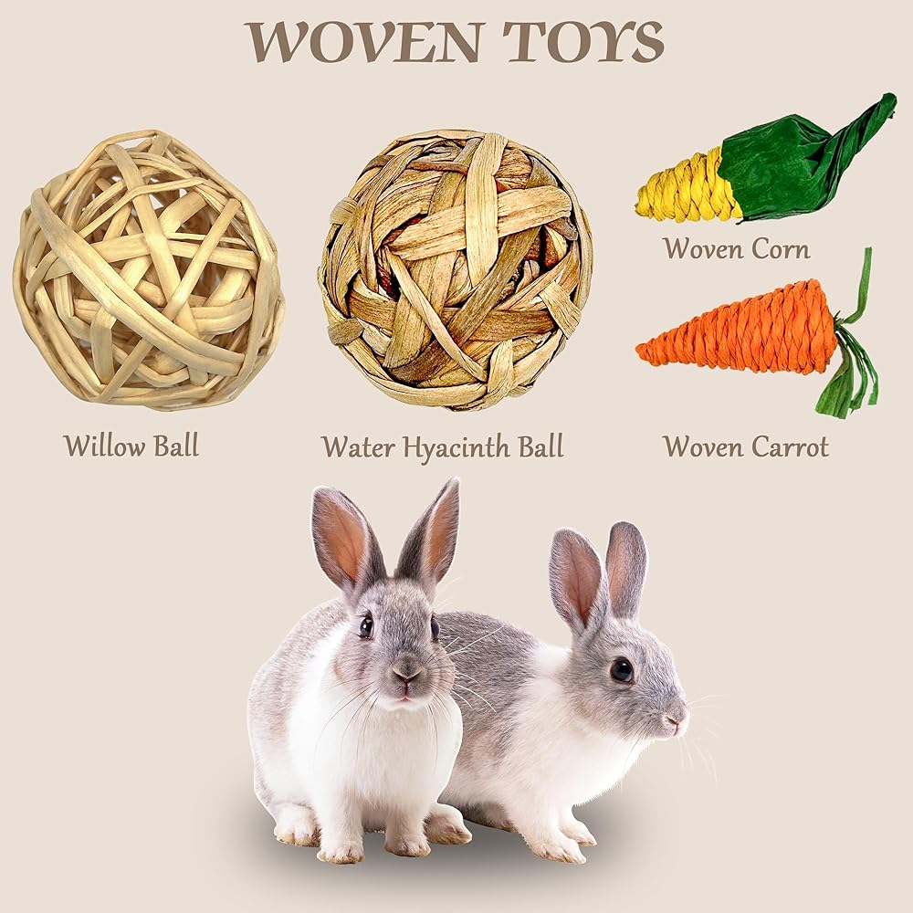 🐹【طبيعية وآمنة】 ألعاب الأرنب مصنوعة من مواد طبيعية 100% مثل عشب تيموثي والخيزران الحلو وخشب التفاح وما إلى ذلك، بدون إضافات أو عطور، آمنة وصحية. يمكنك أن تطمئن إلى السماح لحيواناتك الأليفة بالاستمتاع بها.
