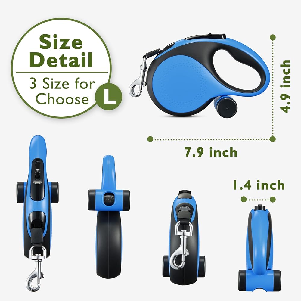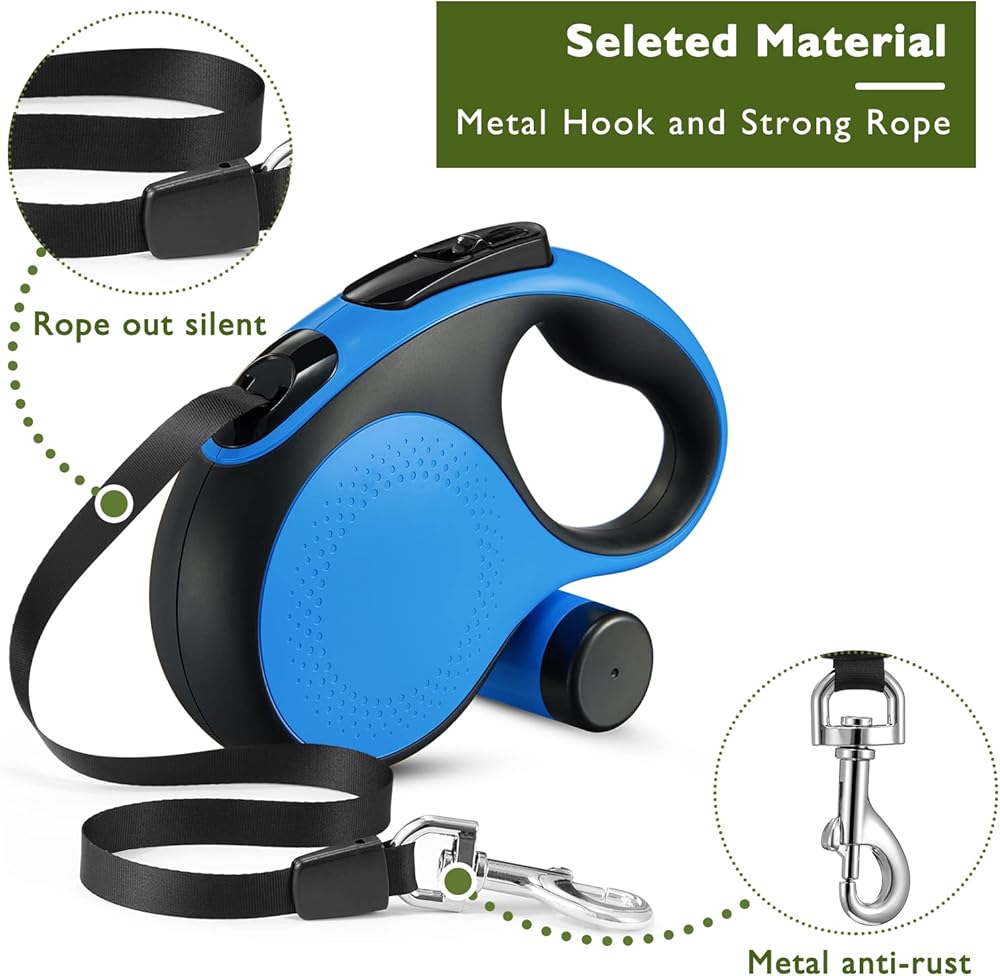 🦮Retractable Dog Leash&LED Flashlight: Our high-quality automatic dog leash with led flashlight function allows you to clearly see the road ahead while walking your dog. You can take your furry friend out for a walk day or night. And our useful dog leash lengths 16 ft suits for Large breed active dogs up to 110 lbs.