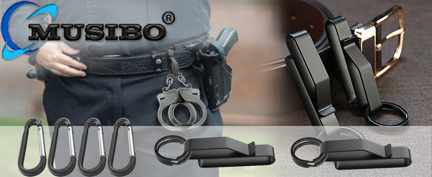 قطعتان من الملحقات التكتيكية لحزام المهام من Musibo، حامل مفاتيح حزام التحمل مع 4 إبزيم على الظهر، حامل مفاتيح، مشبك سلسلة مفاتيح للحزام، ملحقات حزام تكتيكي لحراس السجون في وكالات الإطفاء التابعة للشرطة.