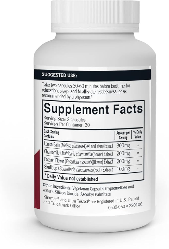 HERBAL BLEND: The combination of lemon balm, chamomile, passion flower, and Chinese skullcap can help promote a restful night's sleep.*