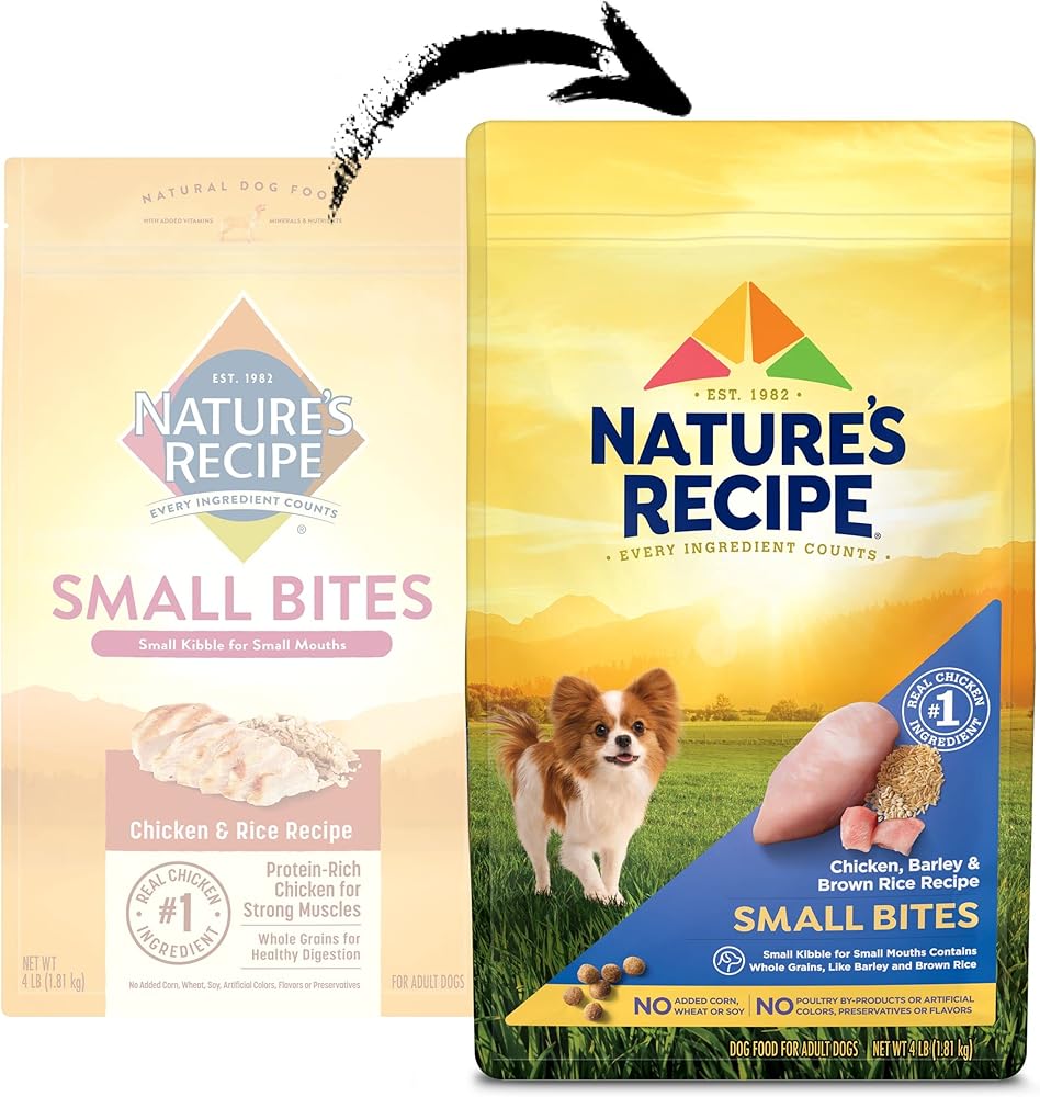 Contains one (1) 12-pound bag of Nature's Recipe Small Bites Chicken & Rice Recipe dog food