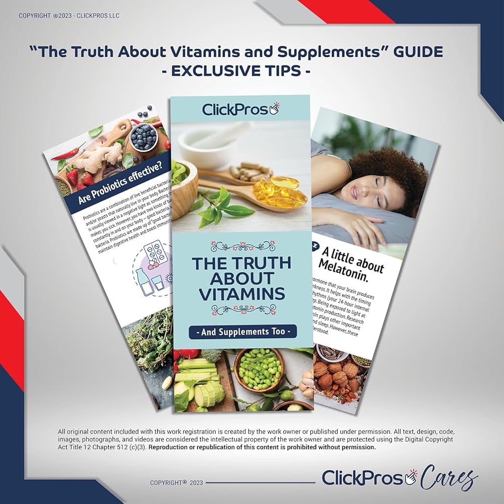 • ClickPros Exclusive “The Truth About Vitamins” Includes Helpful Tips For Customers.
