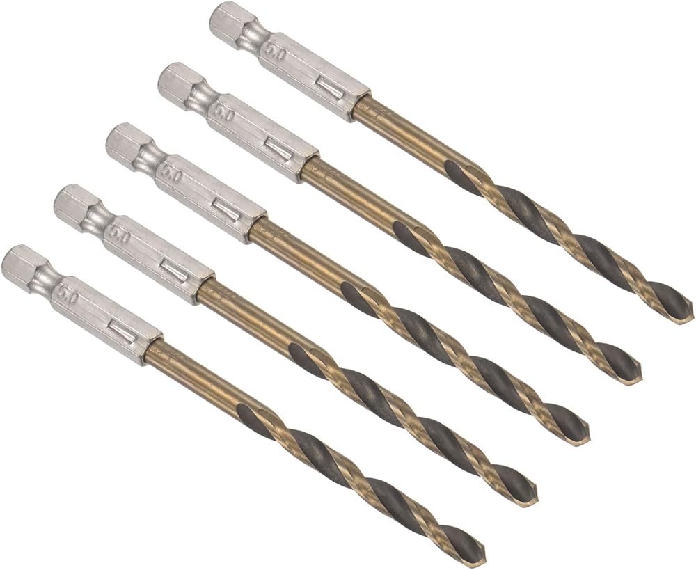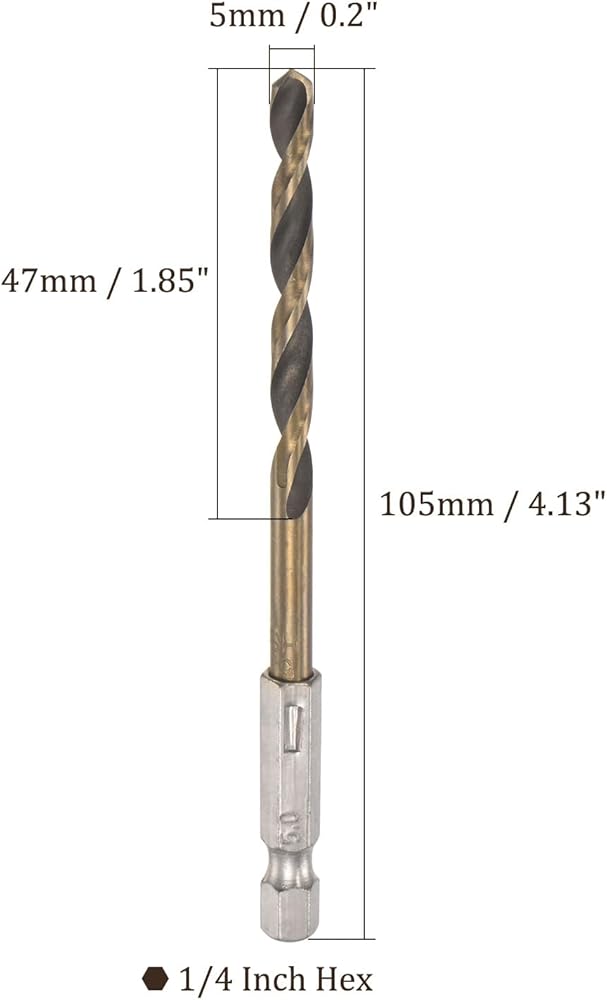 5 قطع من Kozelo لقمة مثقاب مطلية بالتيتانيوم مع ساق سداسية 1/4 بوصة - [5 مم × 105 مم] فولاذ عالي السرعة للإصدار السريع بنقطة انقسام 135 درجة لخشب الحديد وسبائك الألومنيوم
