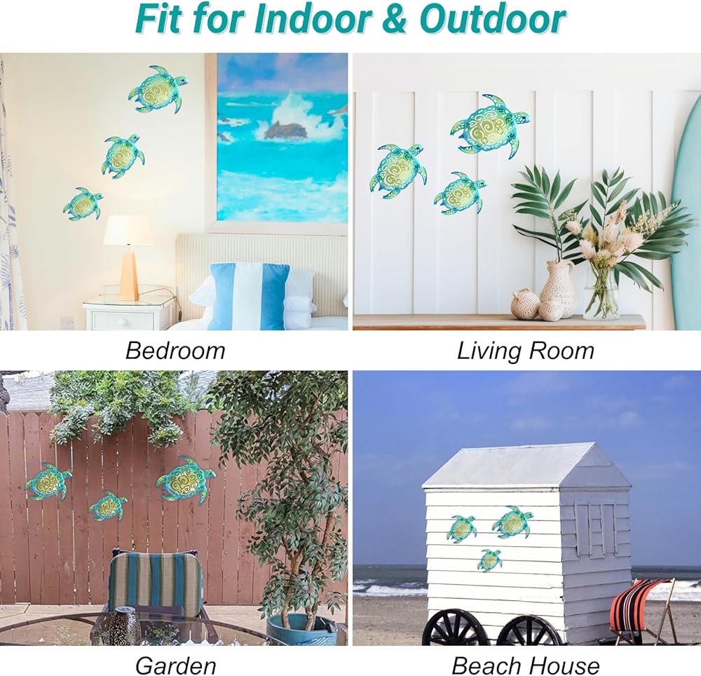 استخدم طبقة طلاء يدوية للحصول على أقصى قدر من المتانة، مما يمنحها لونًا يدوم طويلاً. مع شعبية الأعمال الفنية الجدارية المعدنية، فإن هذه المجموعة المكونة من 3 ديكورات جدارية على شكل سلحفاة هي الخيار الأفضل لتزيين منزلك.