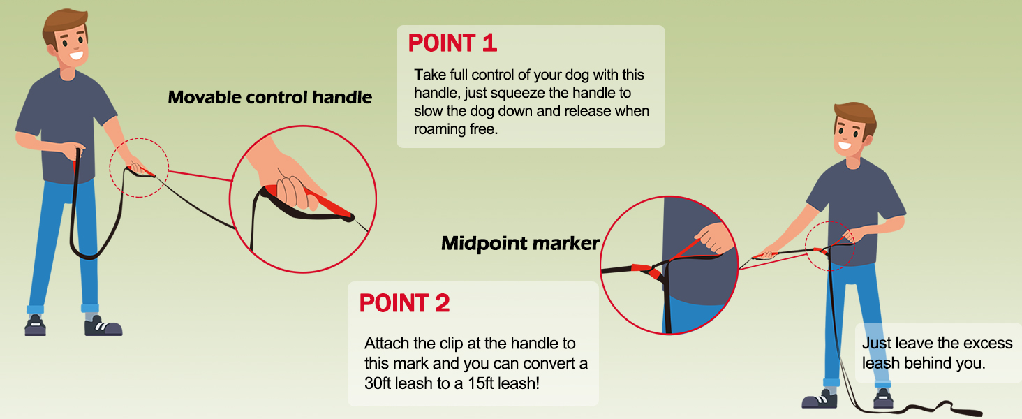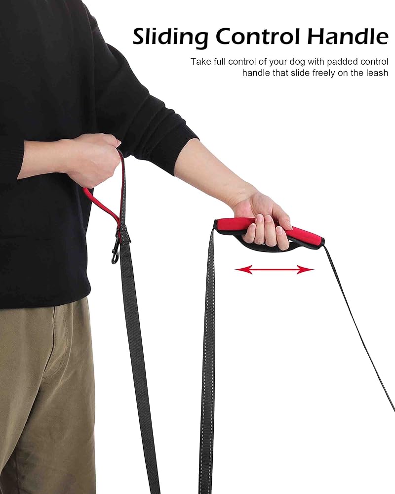 تحكم بشكل كامل في كلبك باستخدام مقبض التحكم المنزلق الذي يسمح لك بإبطاء كلبك بسهولة دون القلق بشأن حروق الحبل أو الحاجة إلى قفازات.