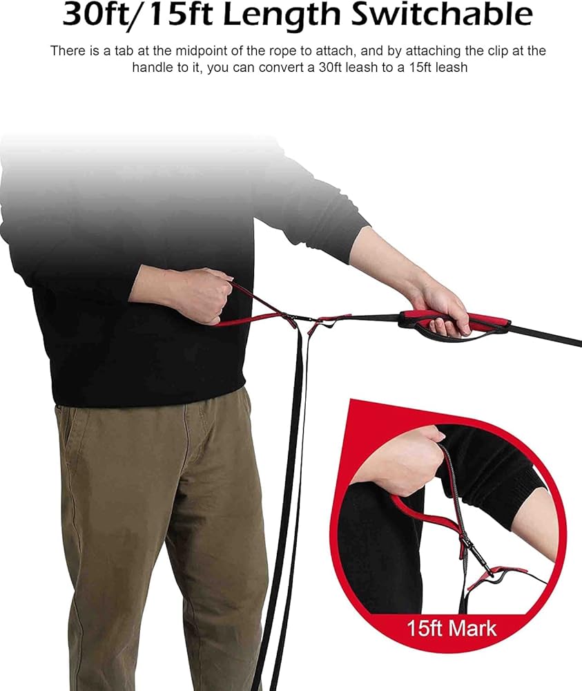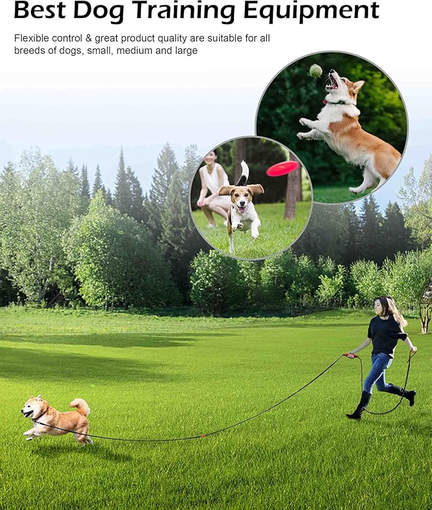 زمام تدريب الكلاب مع مقبض تحكم منزلق، خيط طويل بطول 30 قدم من الرصاص شديد التحمل لتدريب الجراء على الرشاقة، يتضمن حقيبة تخزين مجانية، الأفضل للتدريب واللعب والتخييم