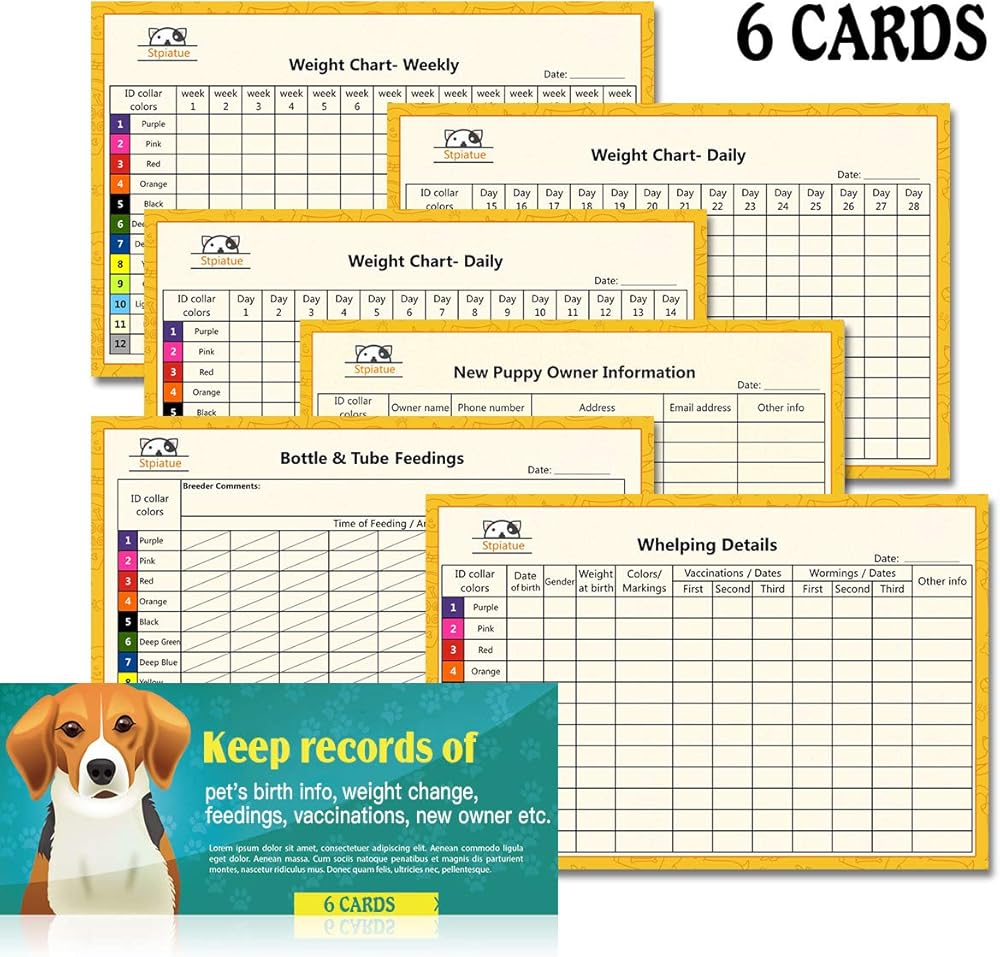 • 6 مخططات لحفظ السجلات: 1 * تفاصيل الإنجاب، 2 * مخطط الوزن يوميًا، 1 * مخطط الوزن أسبوعيًا، 1 * الرضاعة بالزجاجة والأنبوب، 1 * معلومات المالك الجديد. هذا نظام كامل لحفظ السجلات لمربي الجراء، وهو طريقة رائعة للاحتفاظ بسجلات دائمة لكل جرو. وهذا يجعل تتبع القمامة الخاصة بك أسهل بكثير وطريقة مثالية لإظهار المالكين المحتملين.