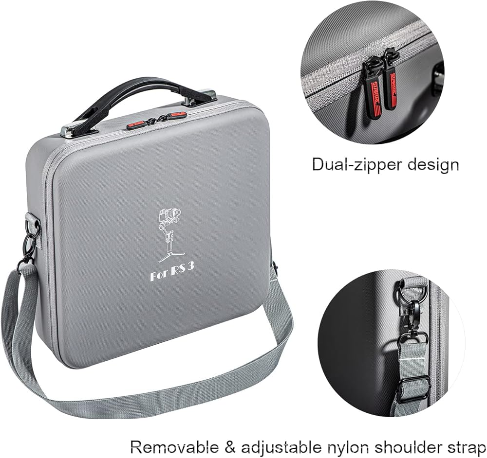 حافظة لمثبت جيمبال دي جيه اي RS3: مصبوب خصيصًا ليناسب مثبت جيمبال دي جيه اي RS3. قم بحماية الطائرة بدون طيار وملحقاتها من الرطوبة والتلف مع حقيبة الحمل ذات الهيكل الصلب لمثبت جيمبال دي جيه اي RS3.